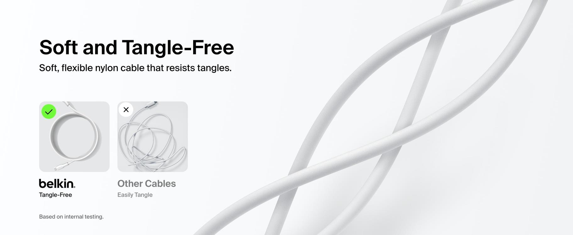 ‡Based on internal bend test at 60°. Based on internal testing. This cable survives 300,000+ bends and 20,000+ plugs, compared with 1,000 bends for an ordinary PVC cable. Actual results may vary.