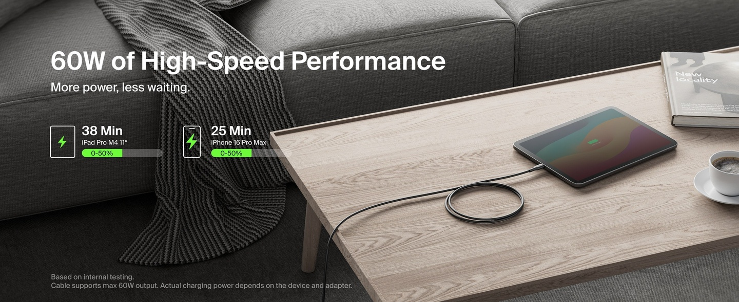 *15W capacity allows for charging iPhone 16 from 0-50% in 25 minutes. Charge time varies with environmental factors; actual results will vary.