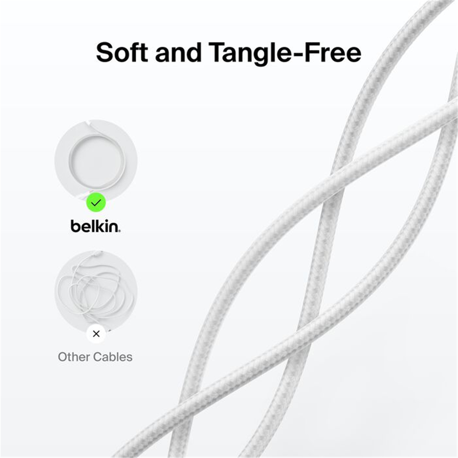 Built with Belkin PCR braiding that survives 350,000+ bends and 20,000+ plug in-and-out cycles.