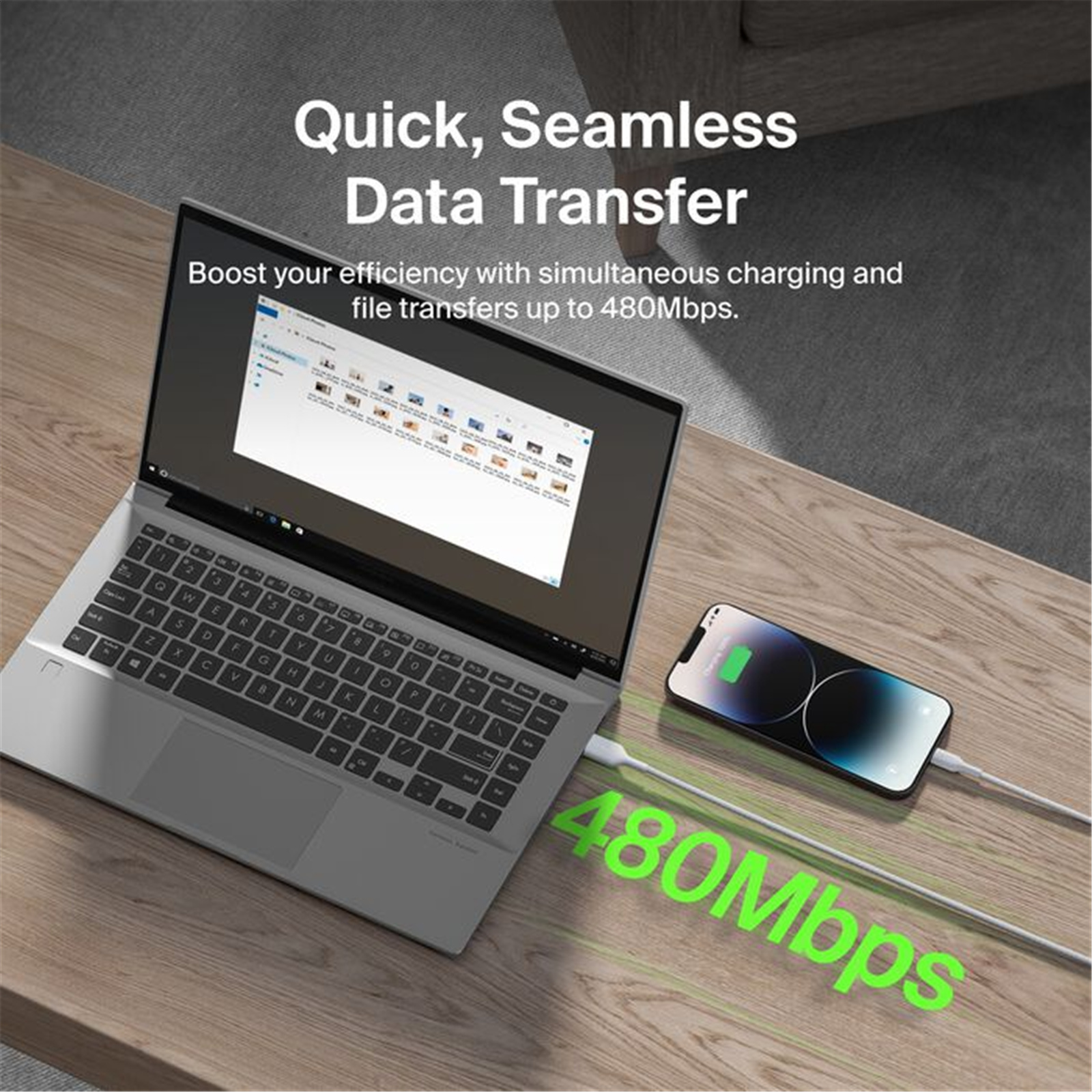 Boost your efficiency with simultaneous charging and file transfers up to 480Mbps.