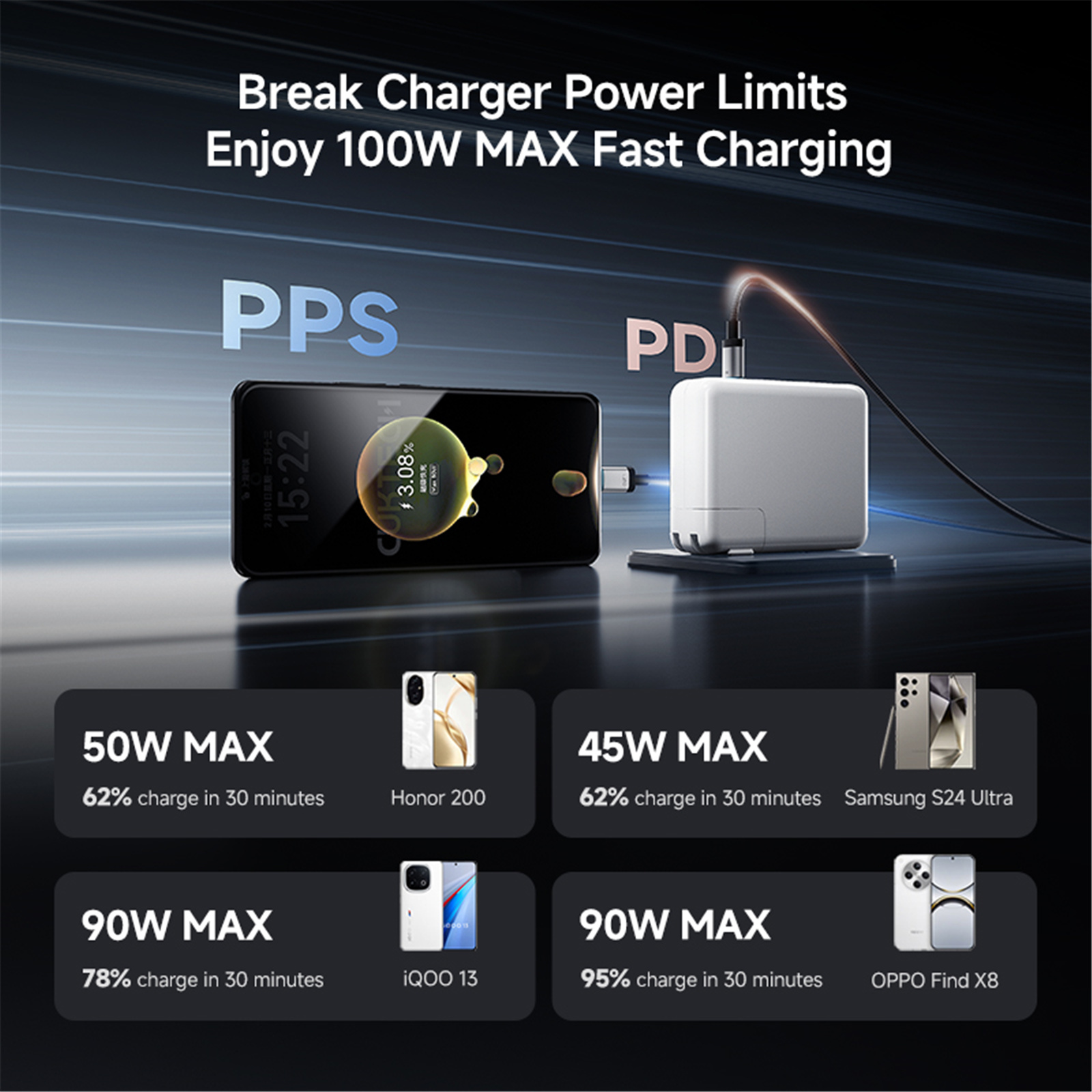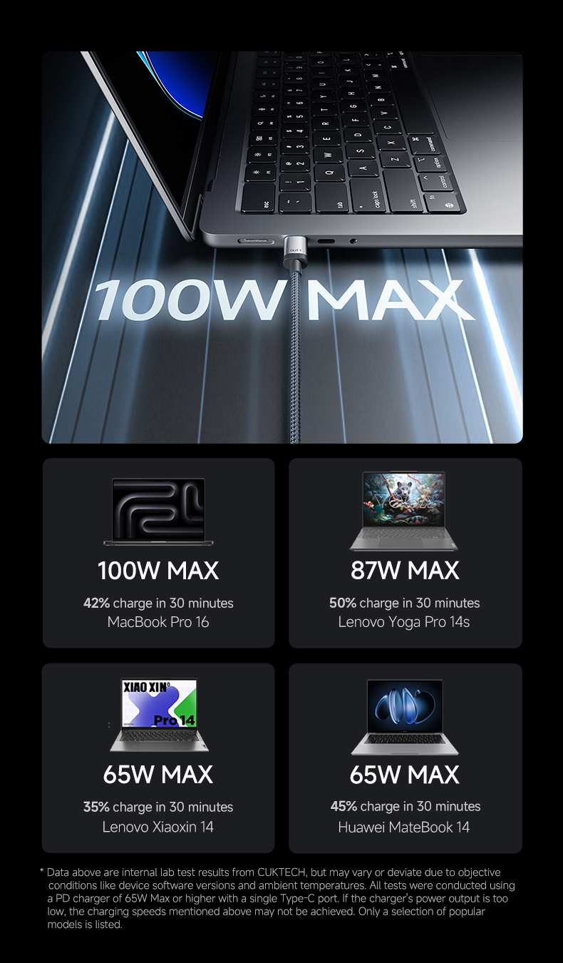 Max 100W Output - Single Port Max 100W Fast Charging Laptop - Fast Charging iPhone, Samsung Phones - Suppport Xiaomi 90W HyperCharge