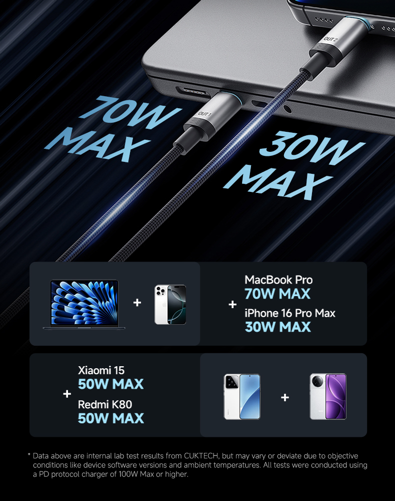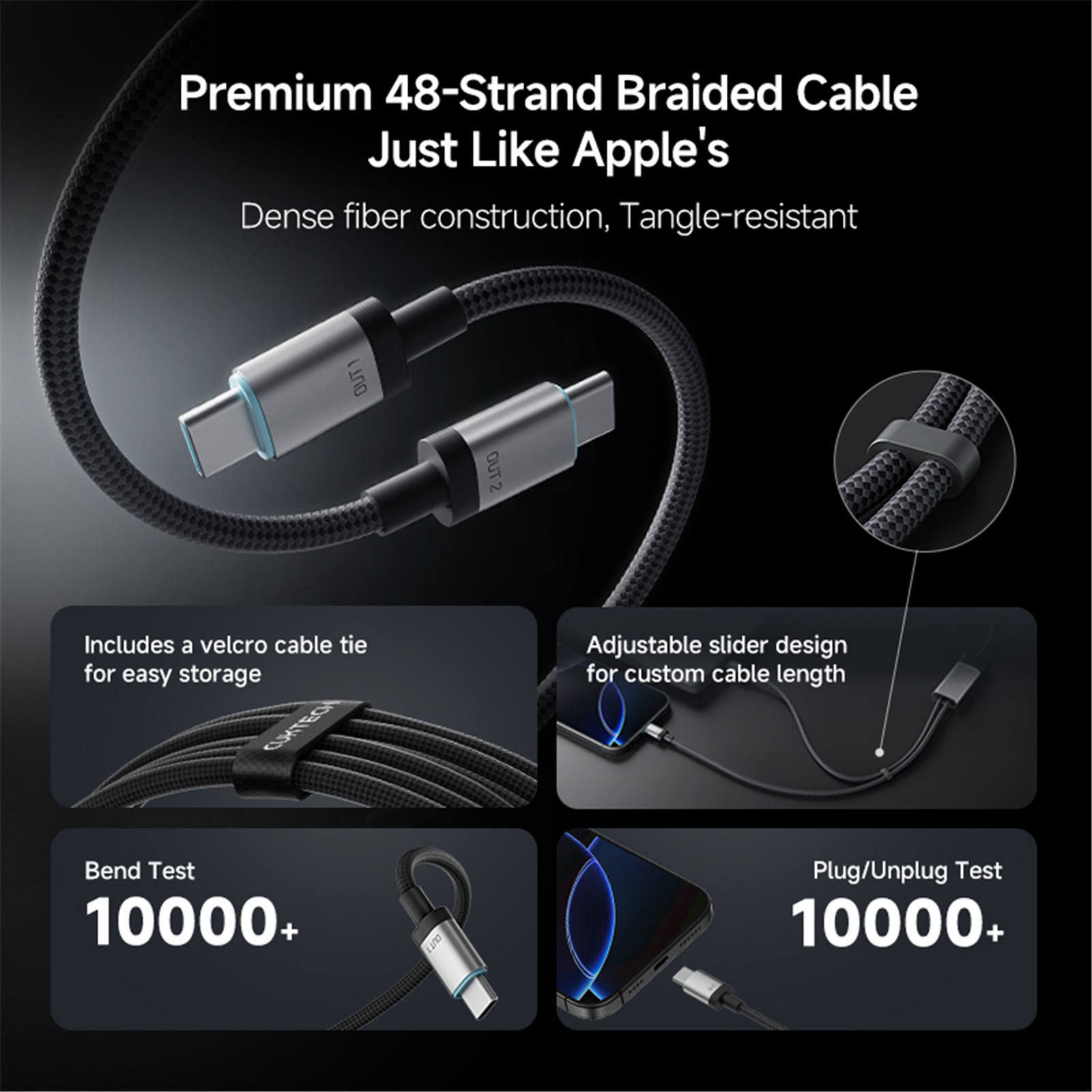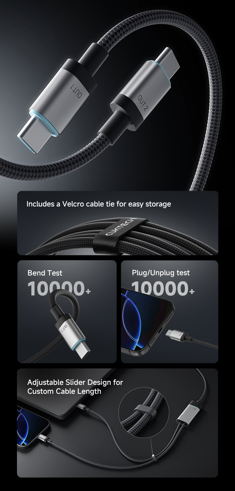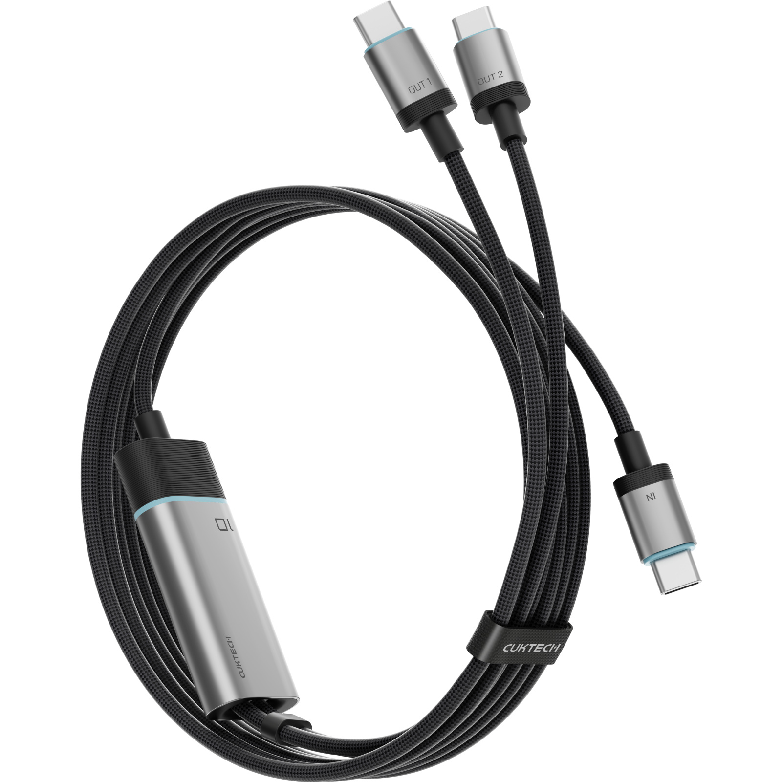 CUKTECH 100W 5A 1.35m USB-C to 2 USB-Cs Fast Charging Braided Cable - Black- Max 100W Output - Single Port Max 100W Fast Charging Laptop - Fast Charging iPhone, Samsung Phones - Suppport Xiaomi 90W HyperCharge
