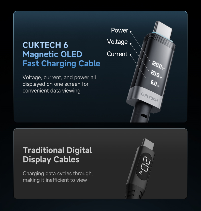 CUKTECH 6 Magnetic OLED Fast Charging Cable