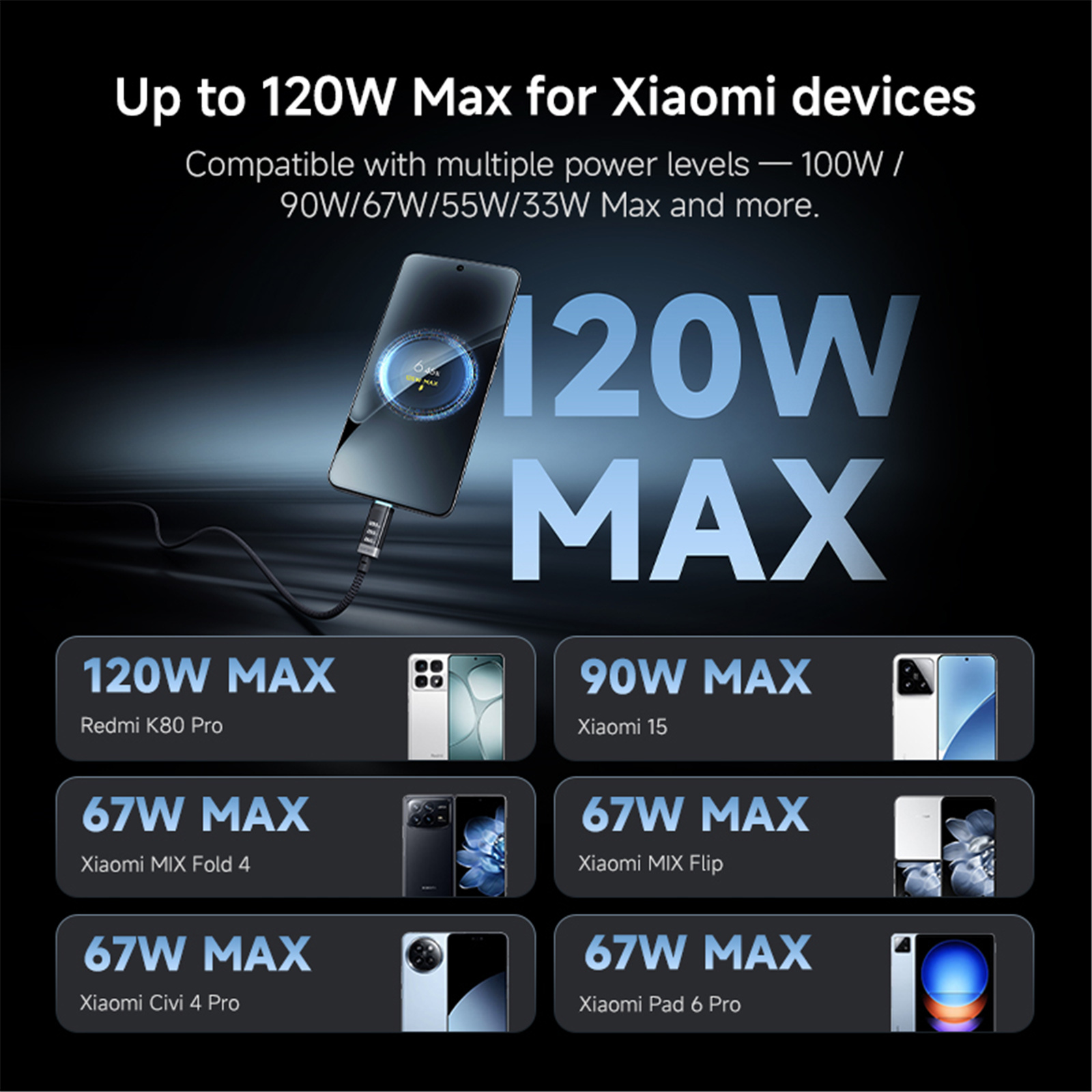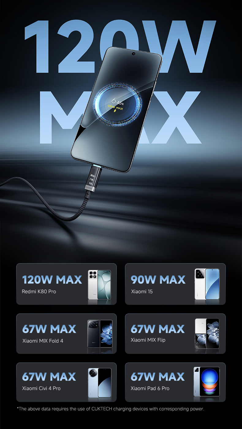 Up to 120W Max for Xiaomi devices
