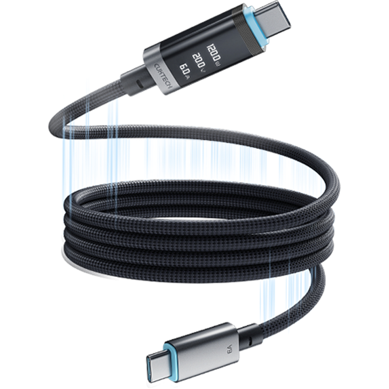 CUKTECH 240W 6A 1.5m USB-C to USB-C Magnetic Digital Display Fast Charging Braided Cable - Black - Ultra-low power OLED Display Screen - Max 240W output - Up to 140W Fast Charging for laptops - Fast Charging iPhone, iPad, Samsung Phones, ta