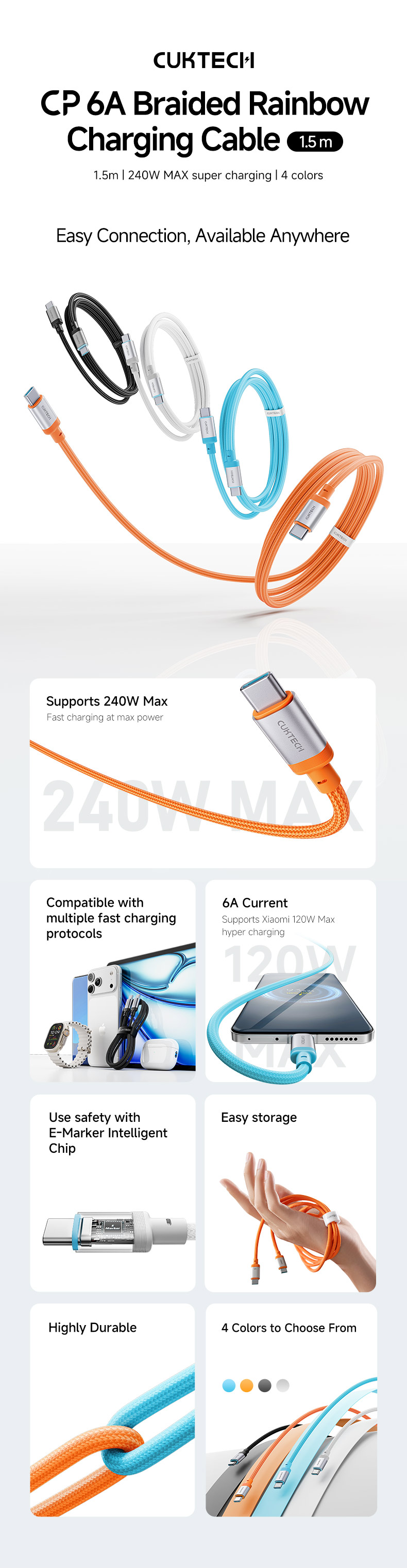 1.5m | 240W MAX super charging | 4 colors