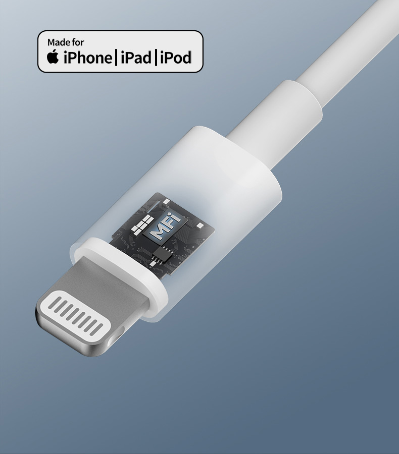 Fast charge for iPhone 8 and later models at the maximum power of 20 W. Pass MFi certification and support synchronous upgrade with the system. Prevent notifications during charging to ensure the security of your iPhone.