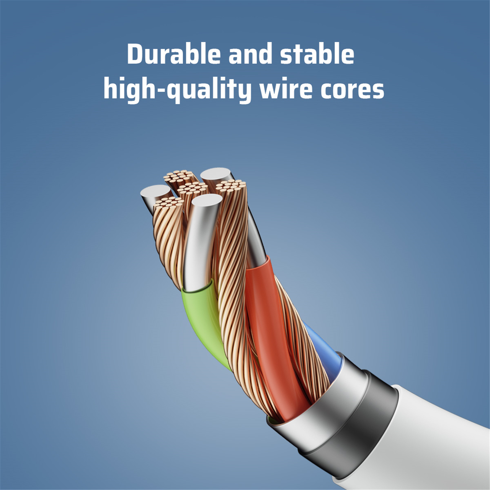 Thickly tinned copper wire cores and plated contacts are designed for reduced wire resistance, more stable charging and data transmission, and lower heat generation. Tthe outer casing is made of fire-retardant materials, ensuring safer usage.