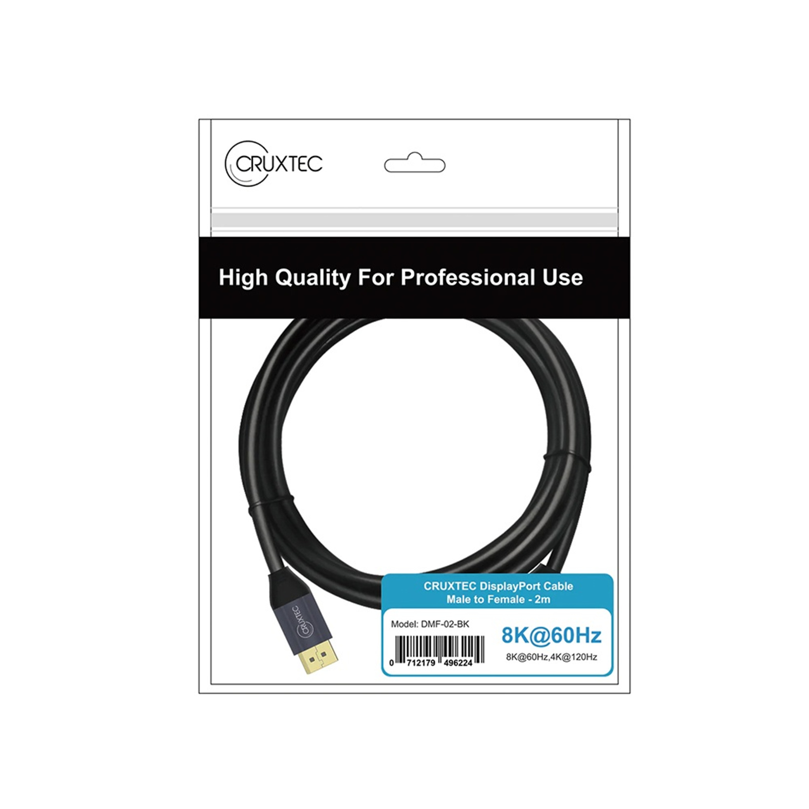 Cruxtec Displayport1.4 Extension Cable Black Male to Female - 8K @ 60Hz