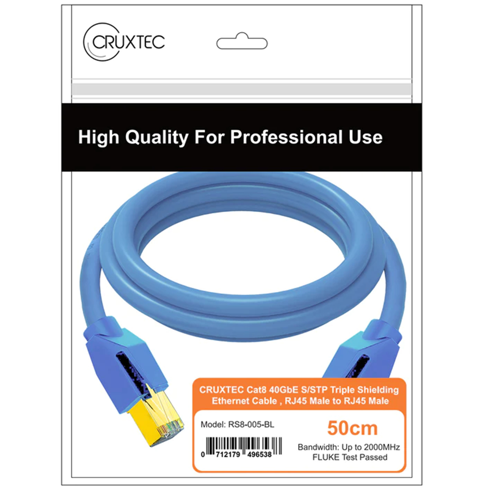 Cruxtec 0.5m Cat8 Ethernet Cable - Blue Color 40Gb/ SFTP Triple Shielding