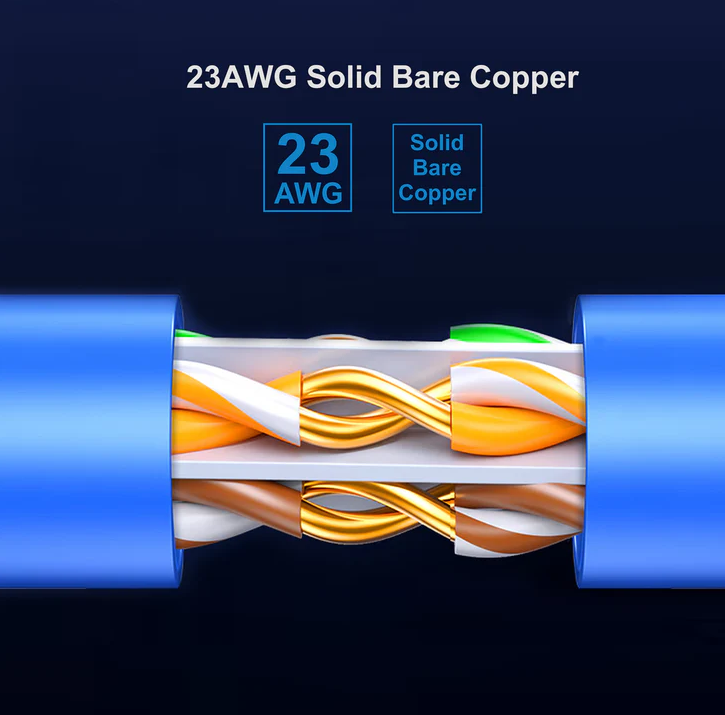 - Pure Copper Supremacy: 100% Solid Bare Copper (23AWG) for maximum signal strength.