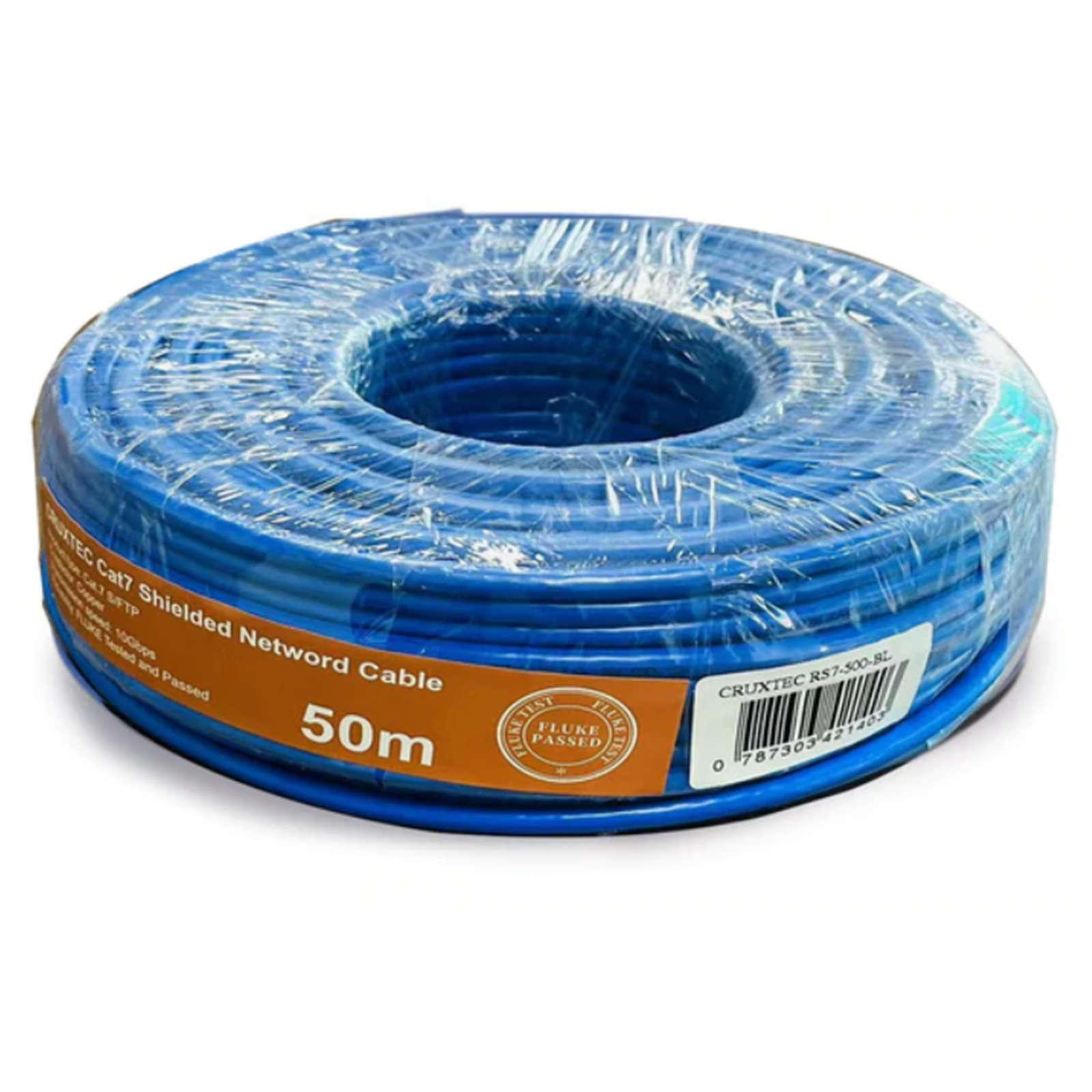Cruxtec Cat7 Ethernet Cable - 50m - Blue 10Gb / SFTP Triple Shielding / Oxygen Free Copper Conductor / Gold-Plated Connectors with Nickel-Plated Copper Shell / Fluke Test Passed