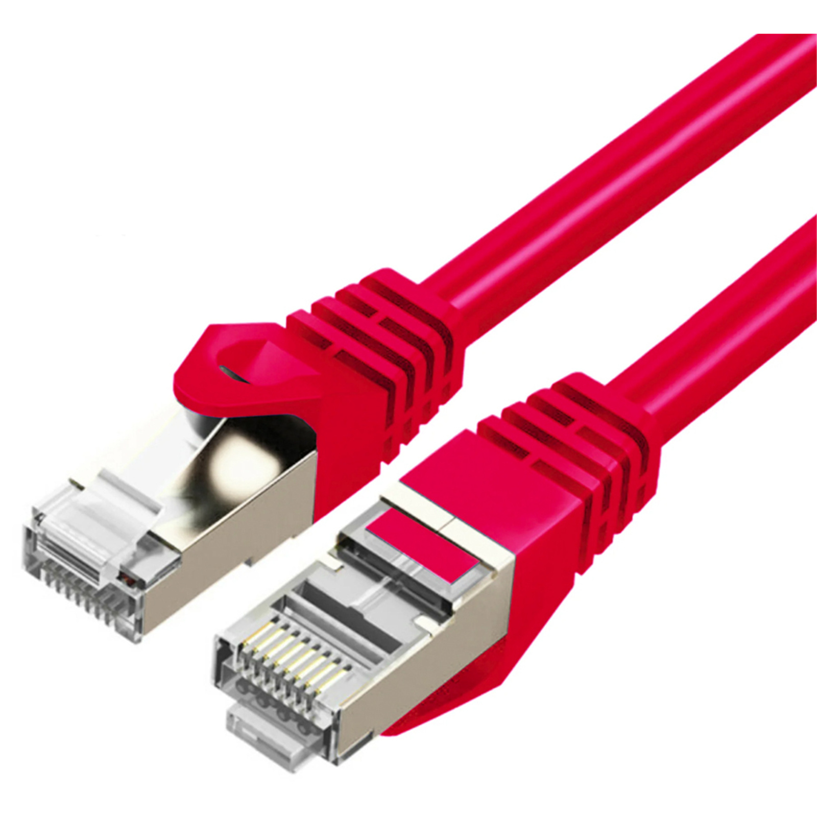 The Cruxtec 20m Cat7 Ethernet Cable in vibrant red is built for high-performance networking, supporting data transfer rates of up to 10Gbps. Its standout feature is the oxygen-free copper (OFC) conductor, which ensures superior signal quality and stability over long distances, making it ideal for demanding environments like data centers or high-speed home networks.
