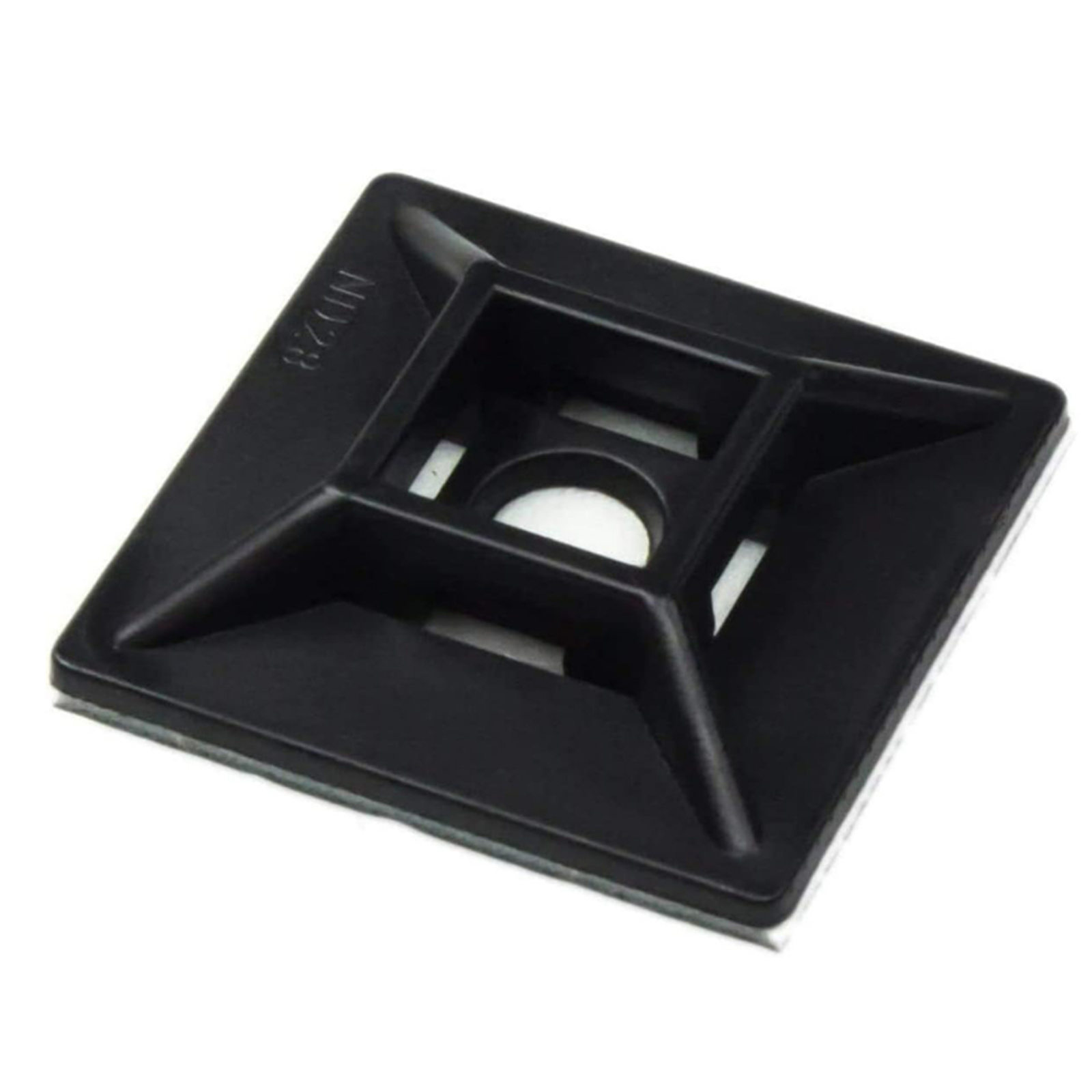 28 x 28mm Self Adhesive Black Cable Ties Mount Pack of 20