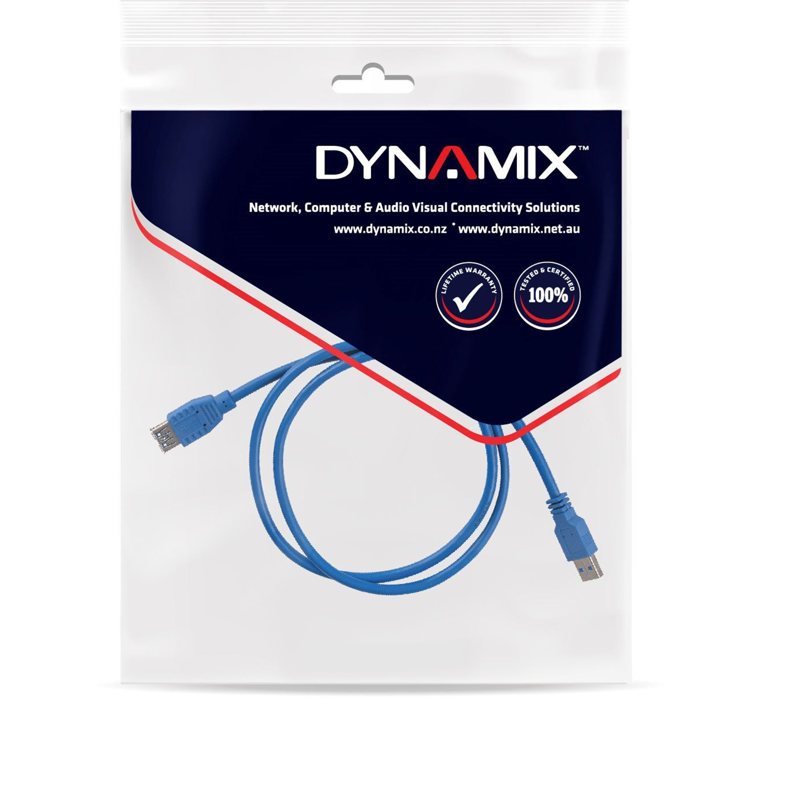 DYNAMIX 2m USB 3.0 USB-A Male to Female Extension Cable. Colour Blue