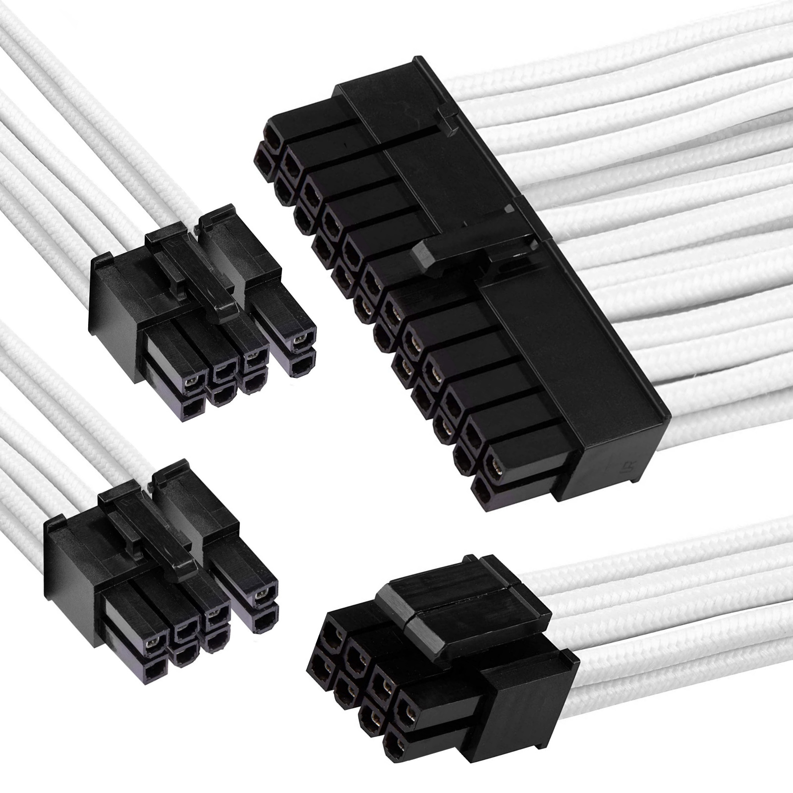 GGPC Gaming PC Braided Extension Cable Kit,(White, 40cm) Includes 1 x 20+4 Pin, 2 x 6+2 Pin, 1 x 4+4 Pin Cables