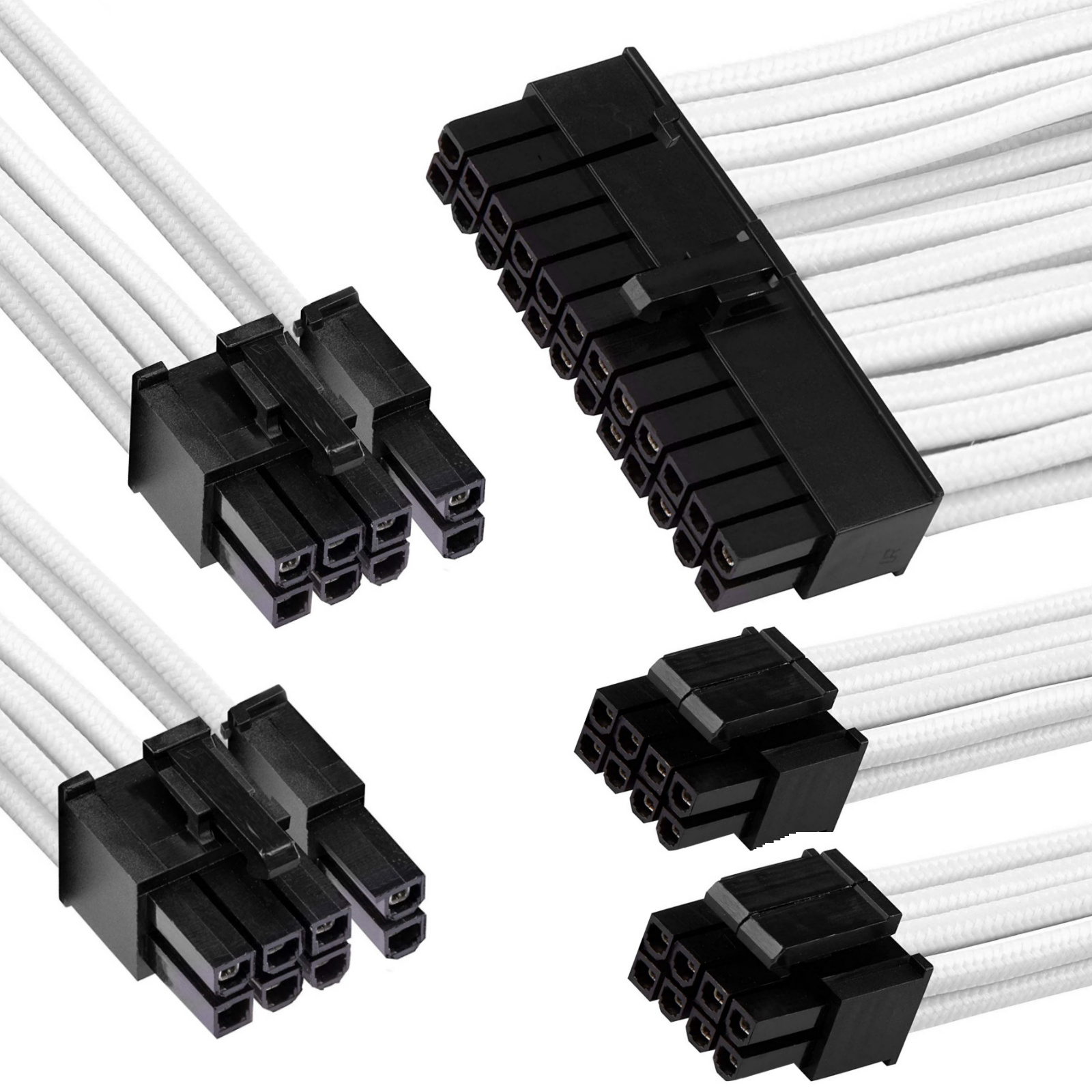 GGPC Gaming PC Braided Cable Kit Pack, (White, 40cm), Set of 5 Cables. Includes 1 x 20+4 Pin, 2 x 6+2 Pin, 2 x 4+4 Pin Extension Cables