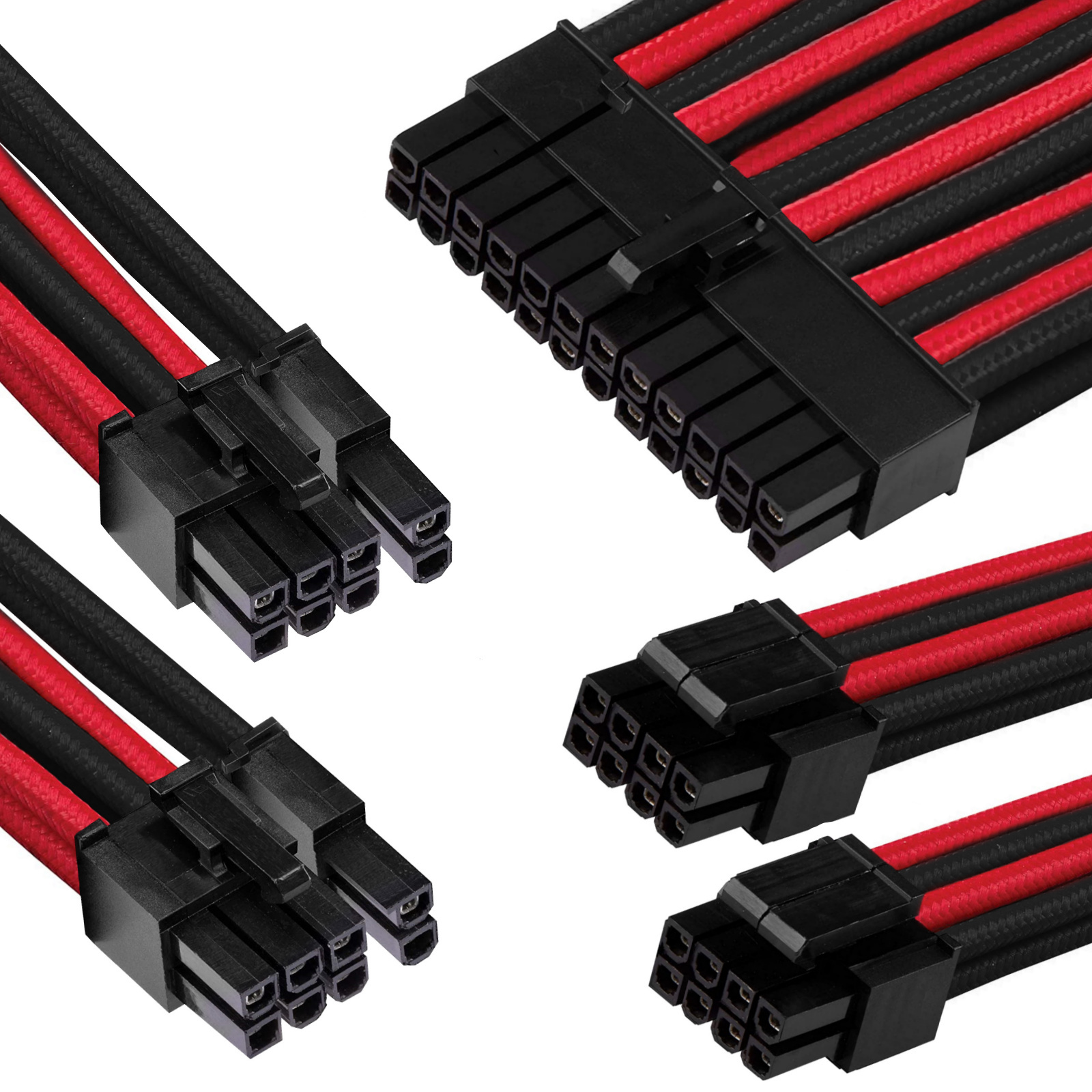 GGPC Gaming PC Braided Cable Kit Pack, (Red & Black, 40cm), Set of 5 Cables. Includes 1 x 20+4 Pin, 2 x 6+2 Pin, 2 x 4+4 Pin Cables