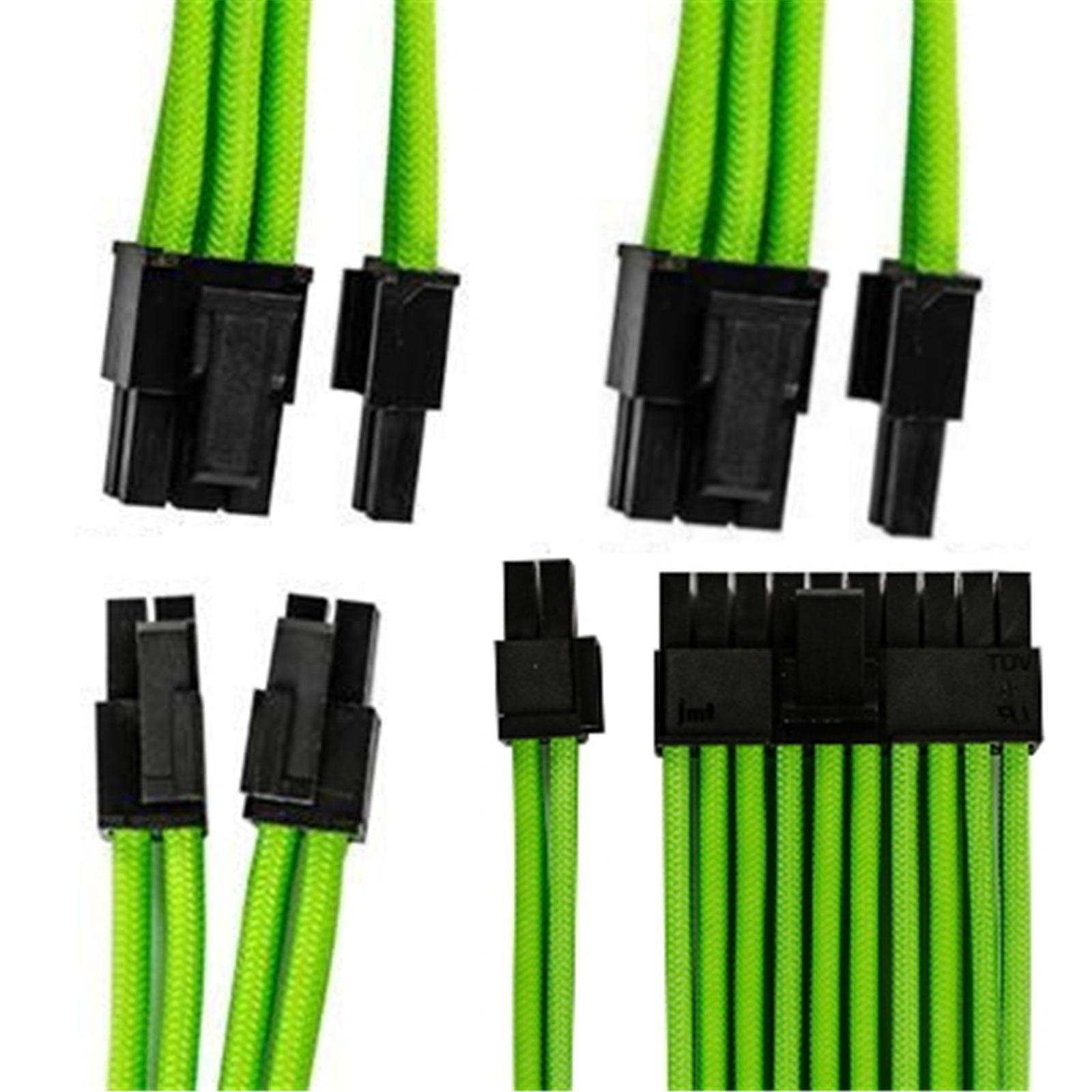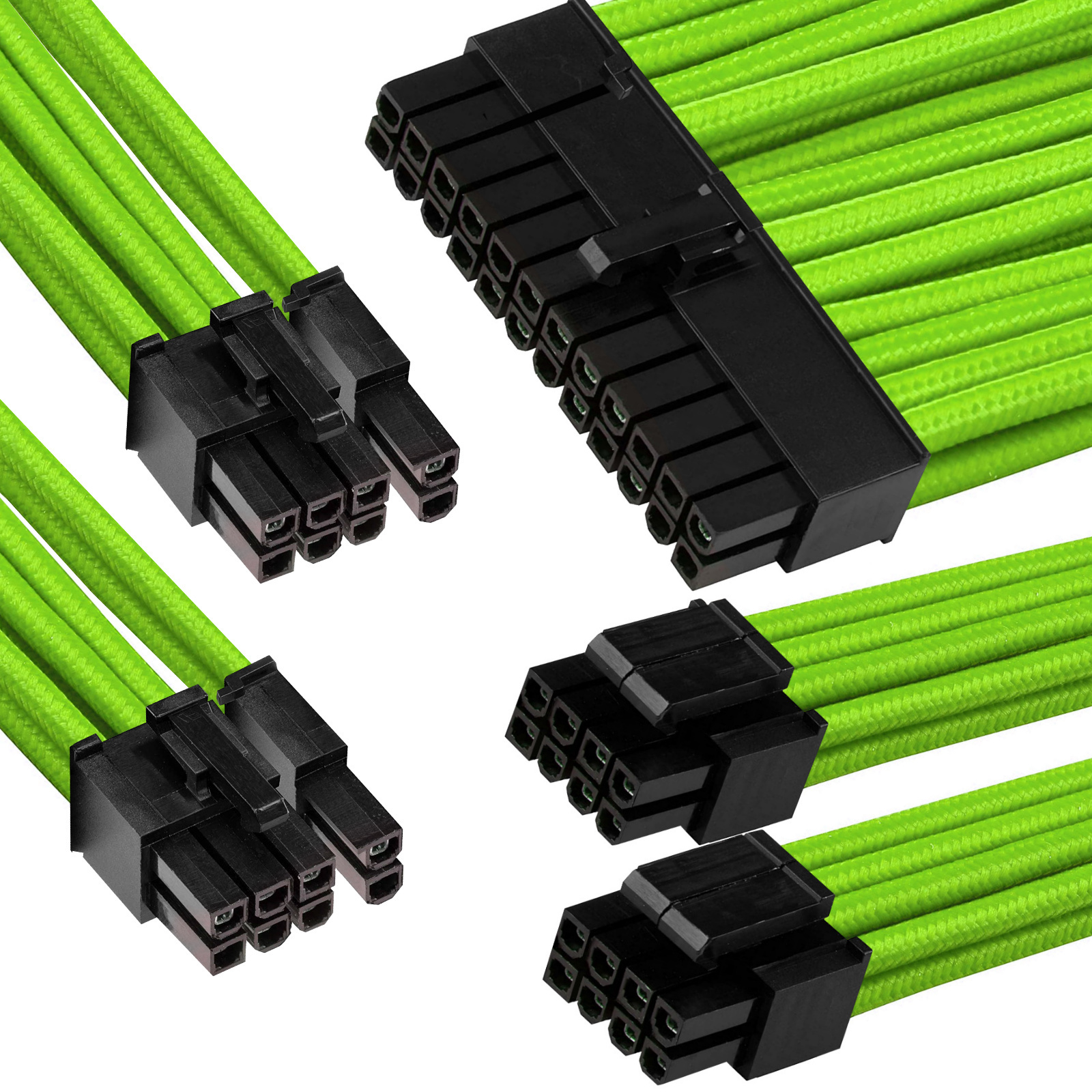 GGPC Gaming PC Updated Version Braided Cable Kit Pack, (Green, 40cm), Set of 5 Cables. Includes 1 x 20+4 Pin, 2 x 6+2 Pin, 2 x 4+4 Pin Extension Cables