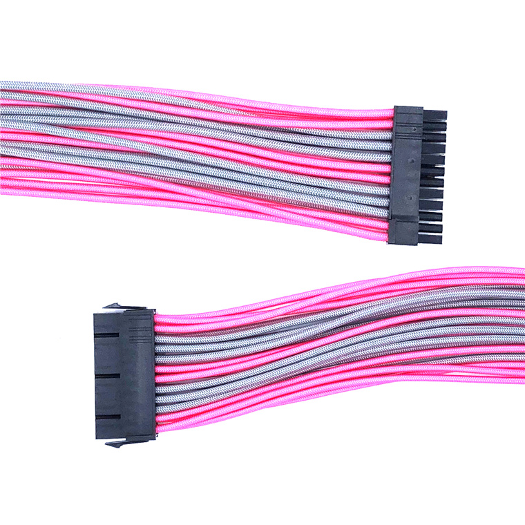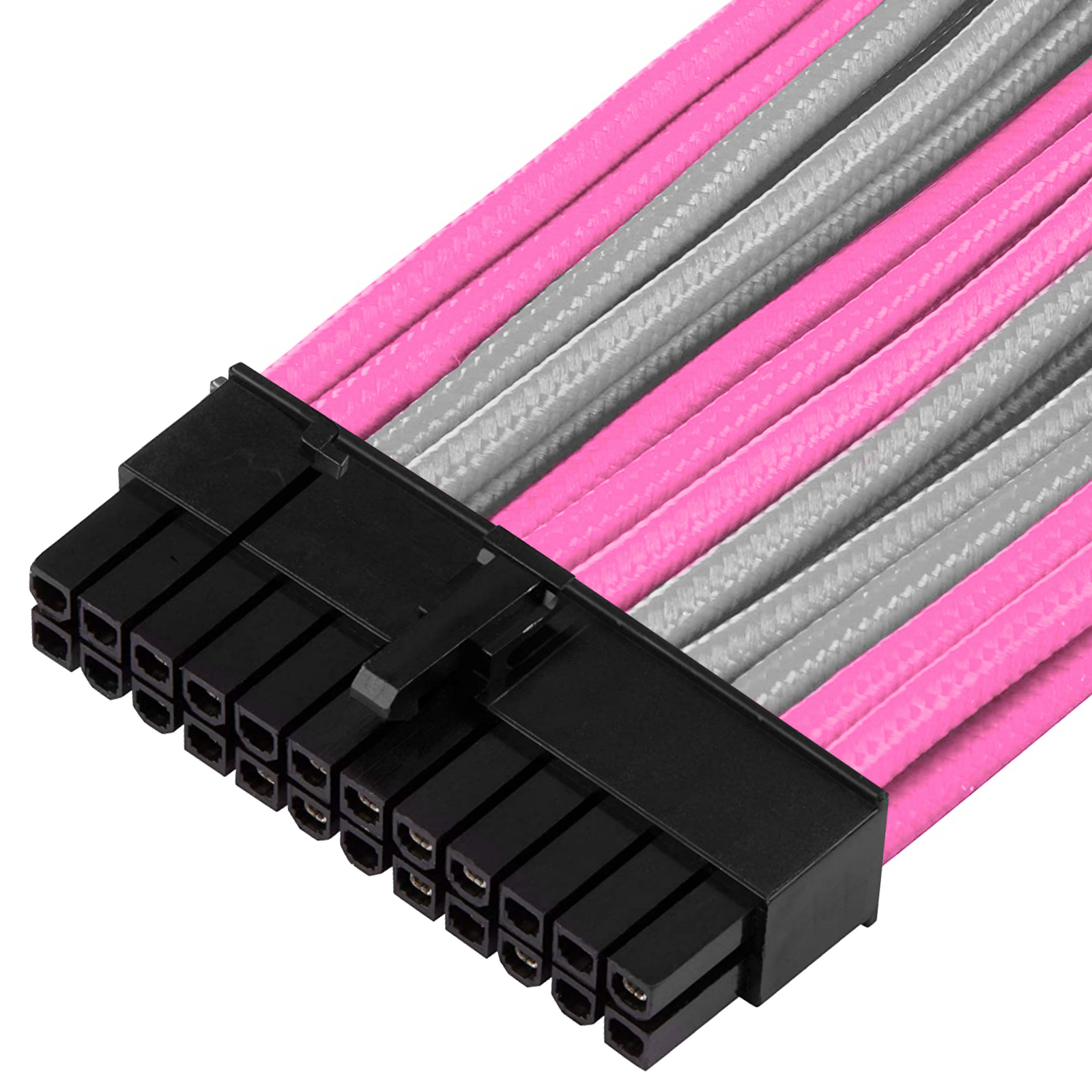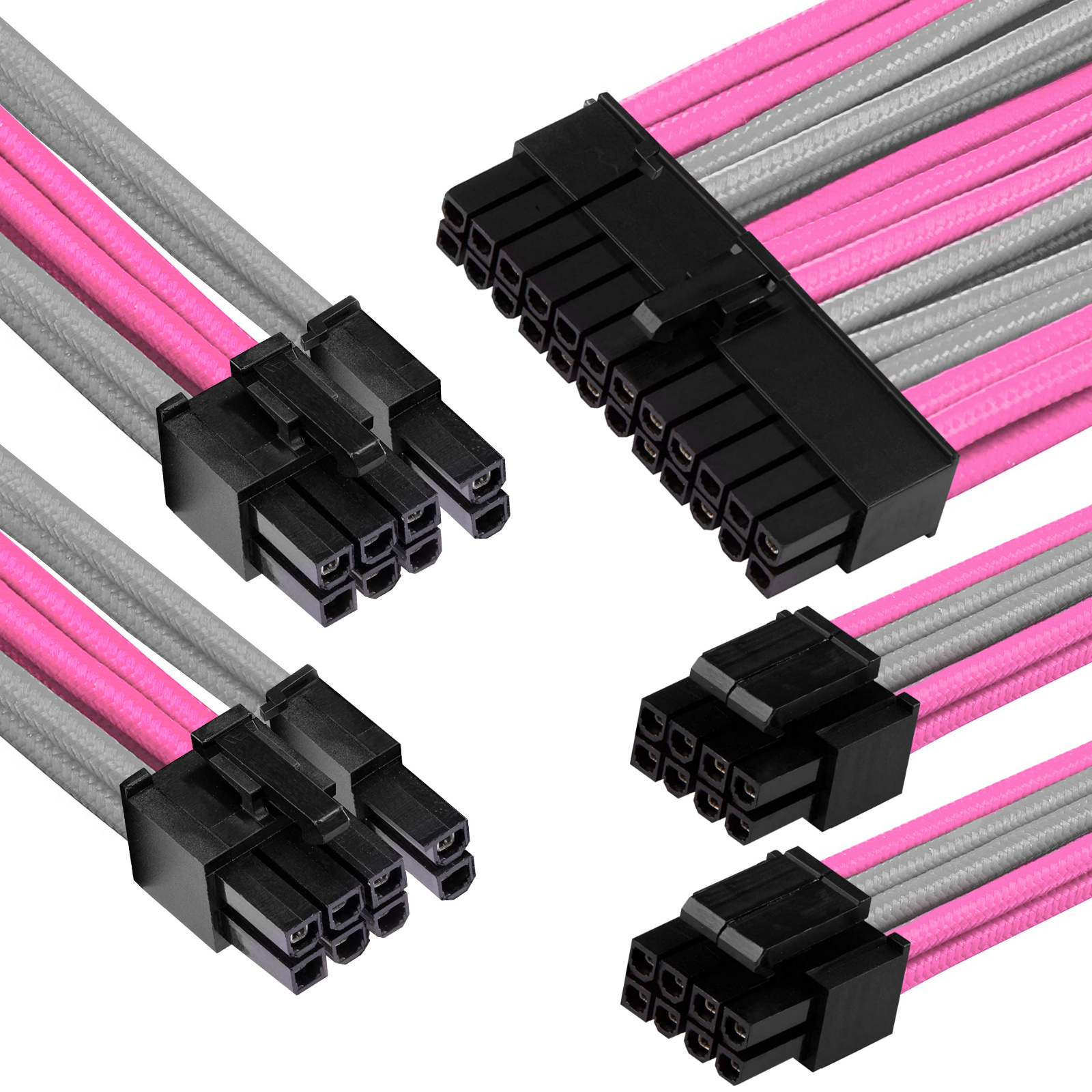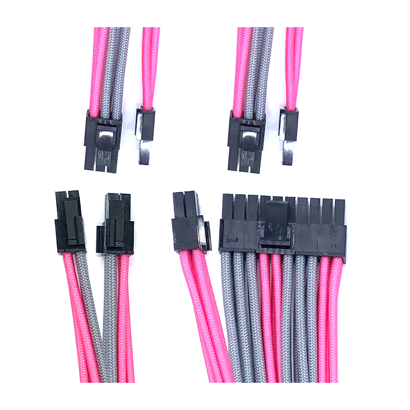 GGPC Gaming PC Braided Cable Kit Pack, (Grey & Pink, 40cm), Set of 5 Cables. Includes 1 x 20+4 Pin, 2 x 6+2 Pin, 2 x 4+4 Pin Extension Cables