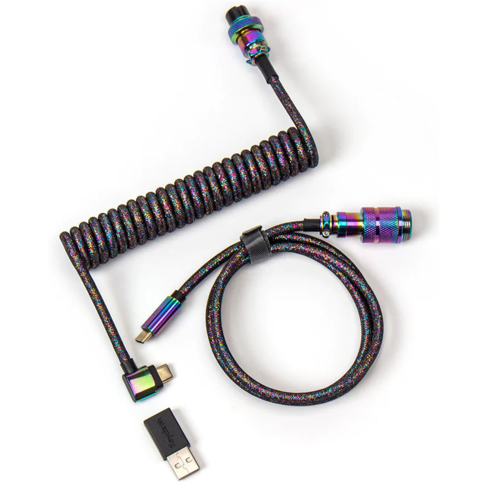 Keychron CAB-7 Premium Coiled Angled Aviator Cable - Rainbow Plated Black