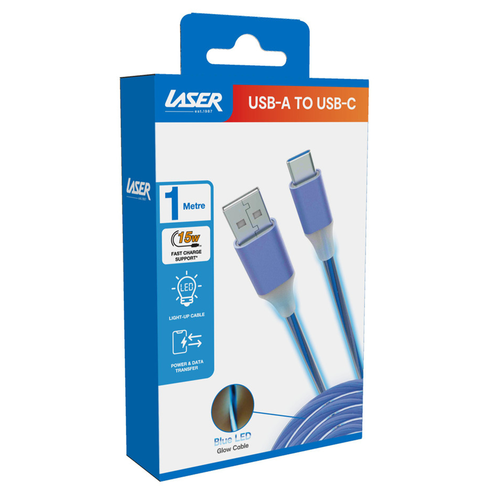 Laser CB-LEDUSBCBLU 1m Type-C to USB LED Charge Cable Blue