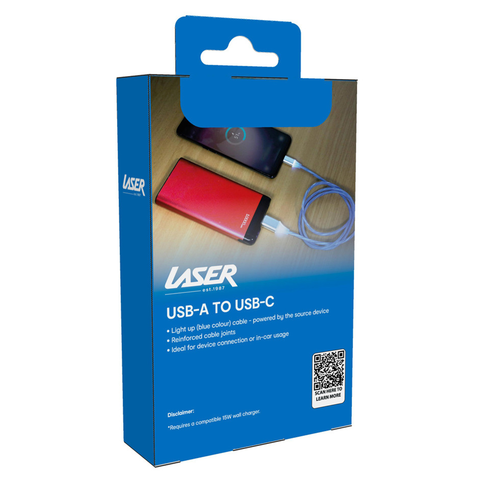 Charge and sync your devices with ease using the Laser USB to Type-C LED Charge Cable. Designed for both convenience and durability, this 1M cable offers fast charging, a slim USB-C connector, and an integrated LED light to help in dark environments.