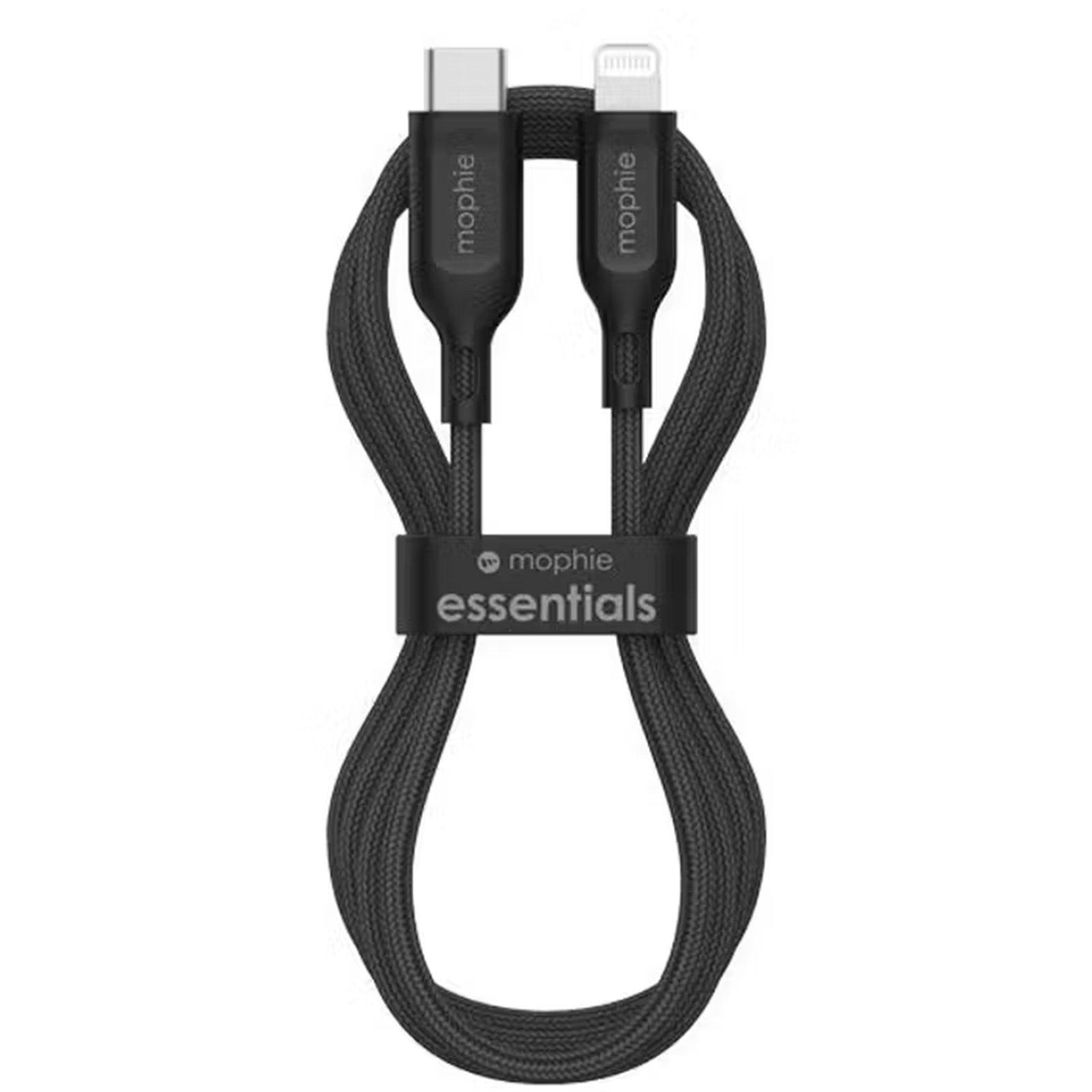 Mophie Essential USB-C to Lightning Cable - 1m - Black Fast Charging - MFi Certified - Durable Braided Nylon - Heavy-Duty Construction - Anodized Matte Aluminium Connectors - Universal Compatibility