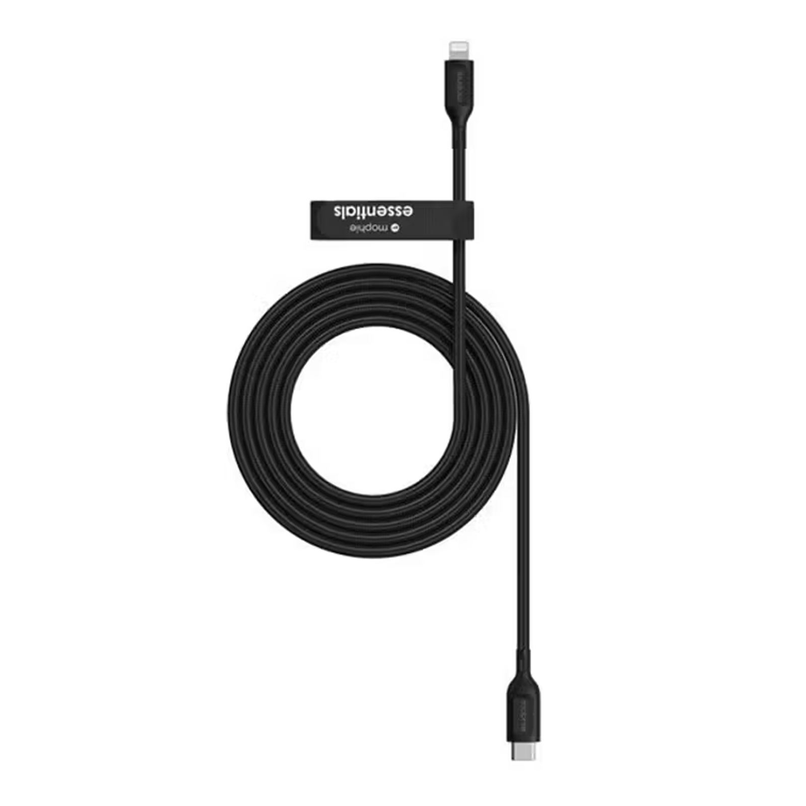 - Mophie 1M Essential USB-C to Lightning Fast Charging Cable - Black, Fast Charge for iPhone, Apple MFi Certified, Soft Braided nylon, Heavy-Duty Construction.