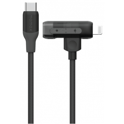 Momax 60W 1.5m 2-in-1 USB-C to Lightning Fast Charging Cable Black - Apple MFi Certified, Durable Premium Braided Nylon, Slide to switch Lightning to USB-C cable, Translucent design