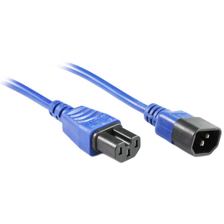 RackPower CM1CH200B 10A C14 IEC plug to 10A C15 IEC 120 degree high temperature socket on 2m1mm2 Blue rubber lead