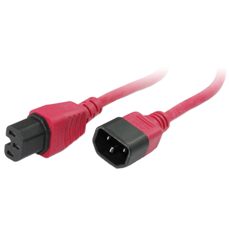 RackPower CM1CH300R 10A C14 to C15 Cable - 3m - Red 120C High Temp Socket - 1mm2 - Rubber