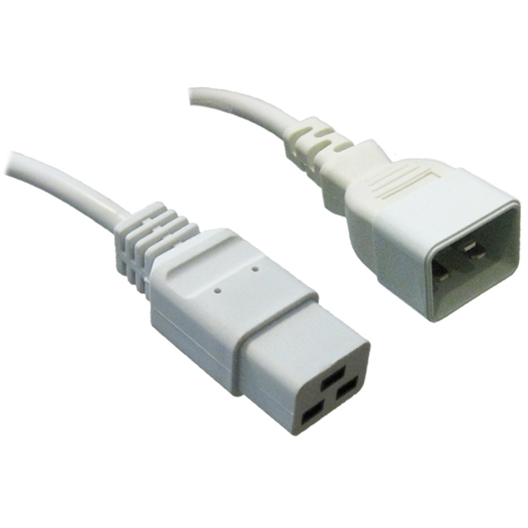 RackPower CM2CC050W 16A C20 IEC plug to 16A C19 IEC socket on 0.5m 1.5mm2 White lead