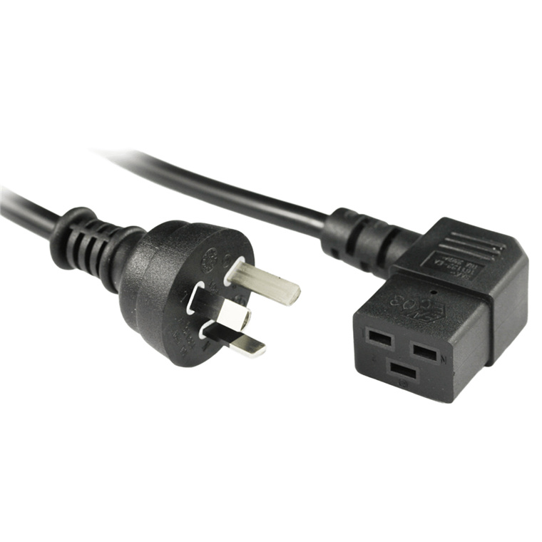 RackPower CM2NC200-SR12 10A 3pin plug to 16A C19 IEC right angled socket on 2m 1.5mm2 Black lead
