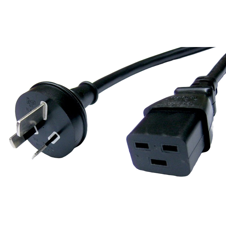 RackPower CM3NC200-22 15A 3 pin plug to 16A C19 IEC socket on 2m 2.5mm2 black lead