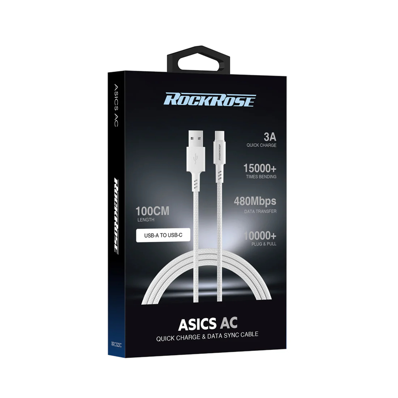 Rockrose Asics AC 3A USB-A to USB-C Fast Charging & Data Sync Cable TPE Connector with Nylon Braided Cord
