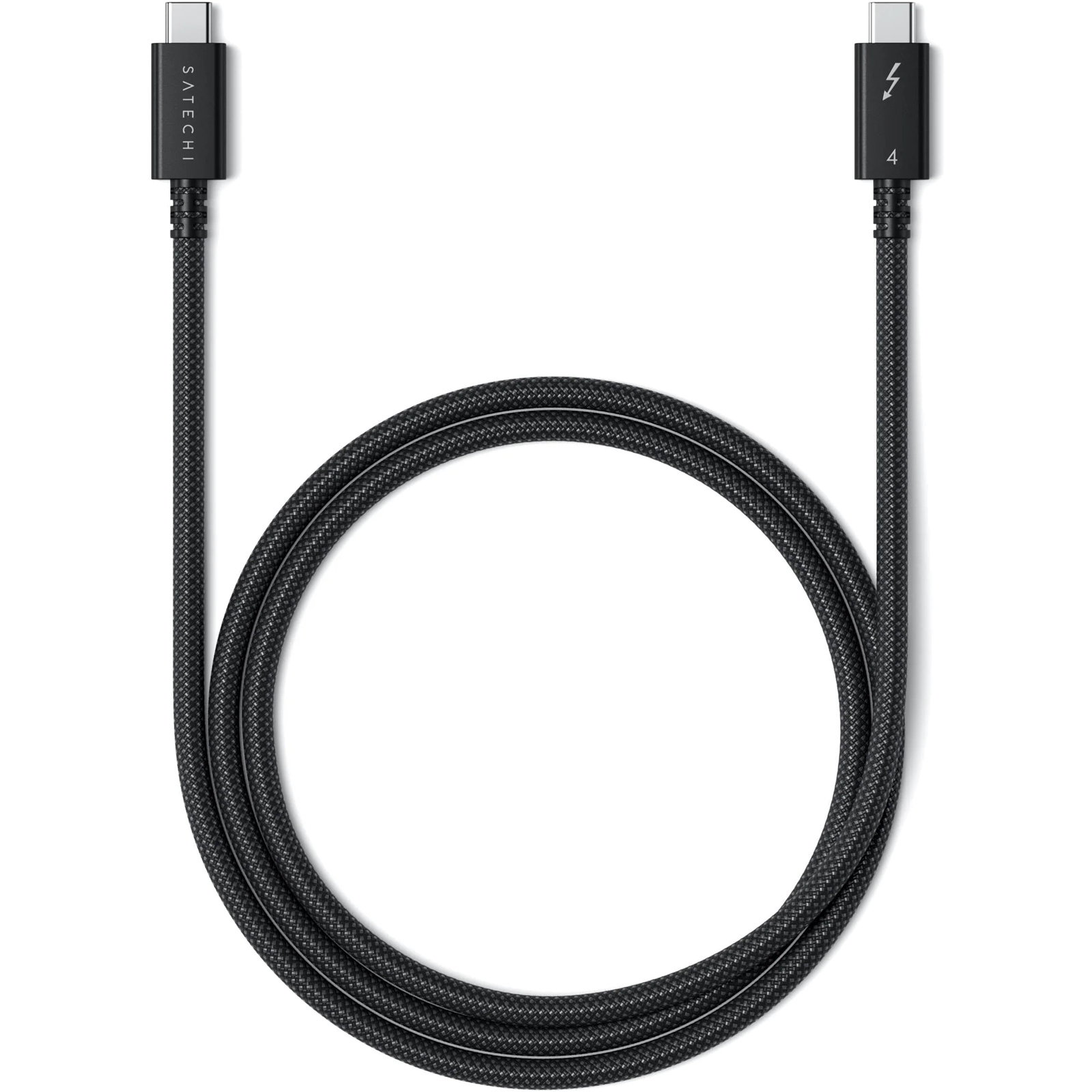 Thunderbolt 4 Pro Cable features a durable black braided design that coils without tangling for easy usage, storage, and extended longevity. It pairs perfectly with all Satechi wall and desktop chargers, as well as all Apple power adapters.