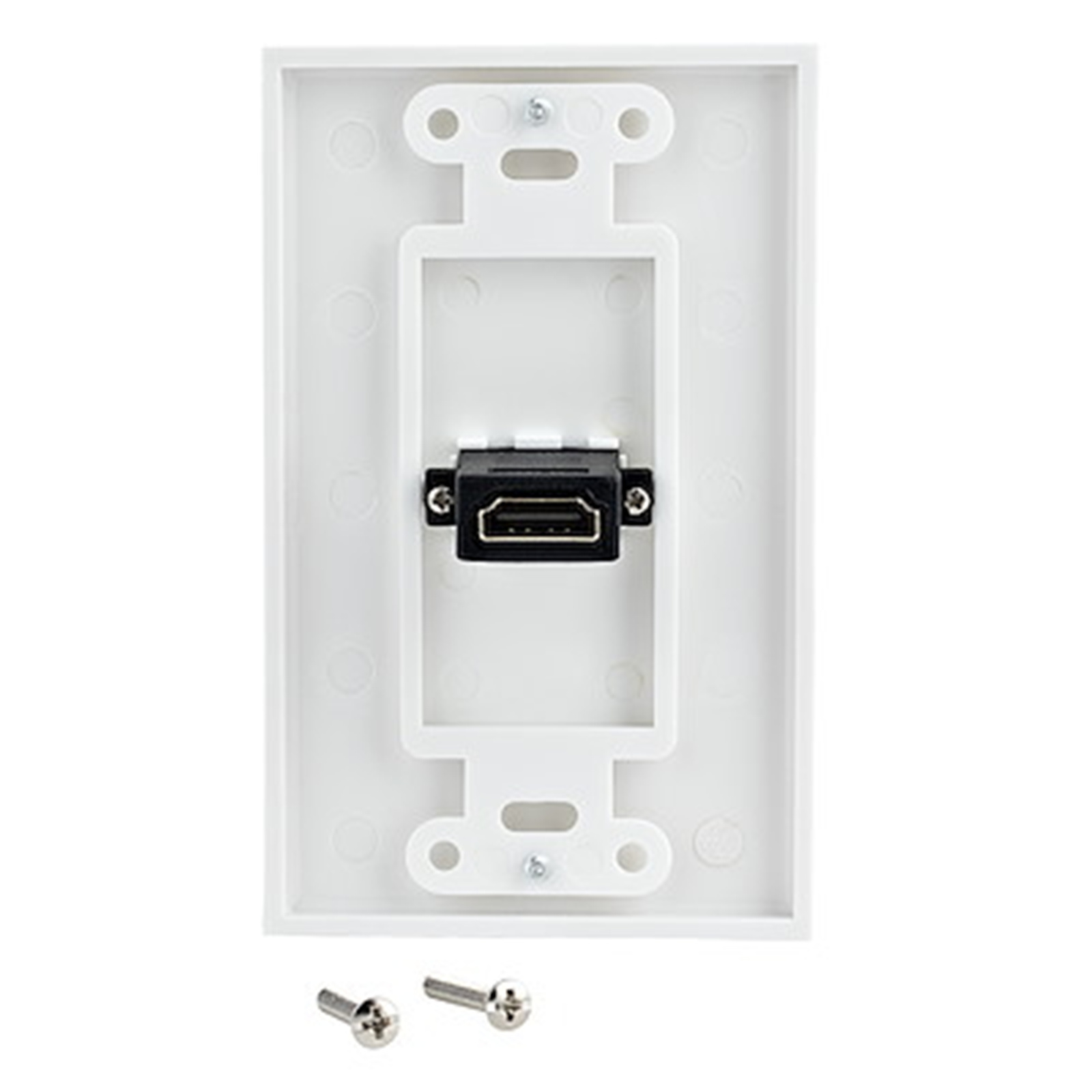 The HDMIPLATE professional-grade Single Outlet Female HDMI® Wall Plate offers an in-wall HDMI digital video receptacle that provides easy connections between a High Speed HDMI video output or Standard HDMI video output, and HDMI-equipped projectors, remote displays, or home theaters.