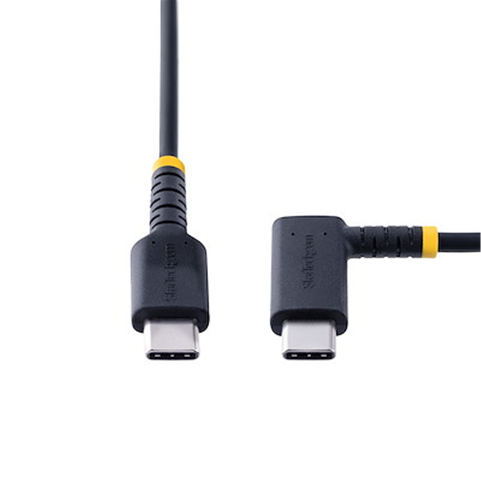 StarTech.com R2CCR-1M-USB-CABLE USB 2.0 - 480Mbps - 60W - 3A USB-C Cable - 1m - Black Right Angle - 60W PD - USB 2.0 - Rugged Aramid Fiber - USB-C Charging Cable - Angled