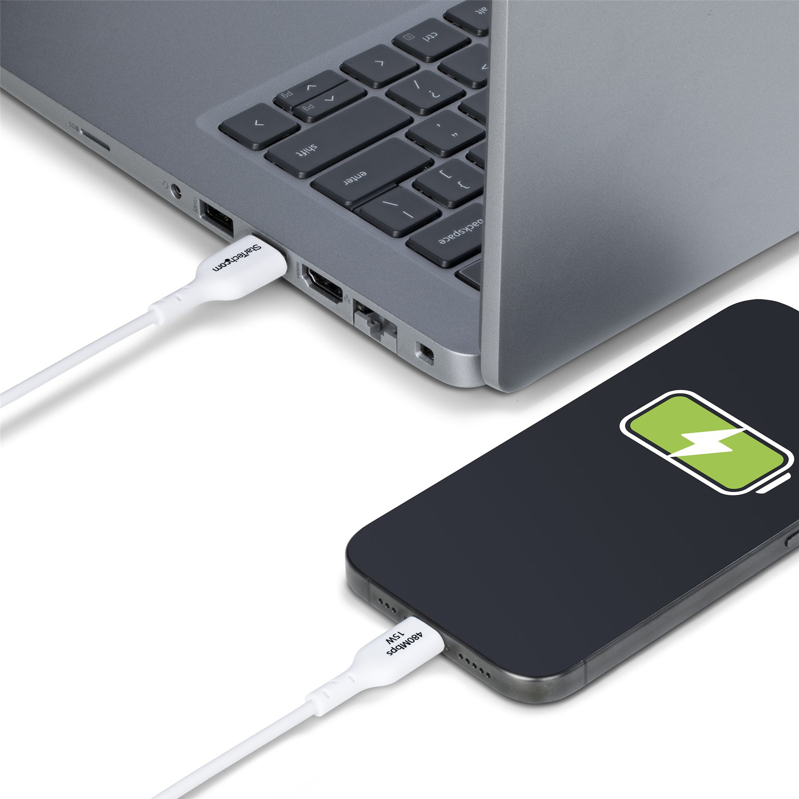 - PERFORMANCE: 15W/3A Fast Charge; USB 2.0 (480Mbps); Length: 1-meter (3.3-foot); Color: White; O.D.: 0.12in (3.0mm); Jacket: TPE w/Aluminum Braided Shield; NOTE: USB-C video (DP Alt Mode) is not supported