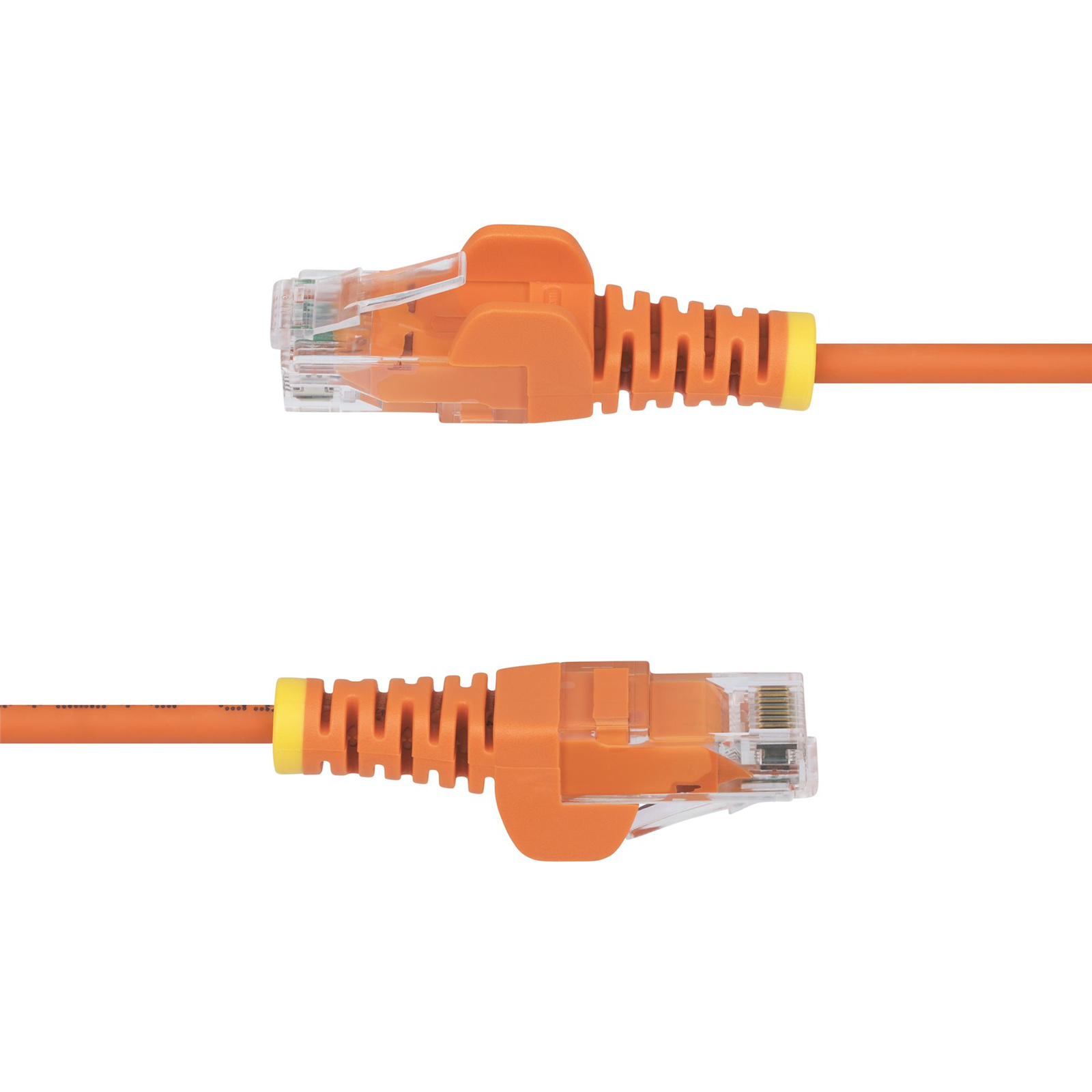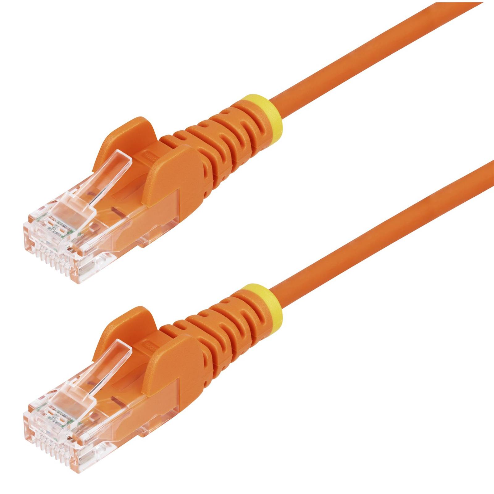 The Slim Cat6 Patch Cord is 36% thinner than standard Cat6 Ethernet cables, enabling greater airflow and heat dissipation in confined spaces. The Slim Cat6 Ethernet cable is also more flexible, for easier cable routing in crowded network racks and patch panels. This cable features snagless connectors that protect the RJ45 clips during installation, reducing snags or breakage when routing through narrow gaps or in between devices.