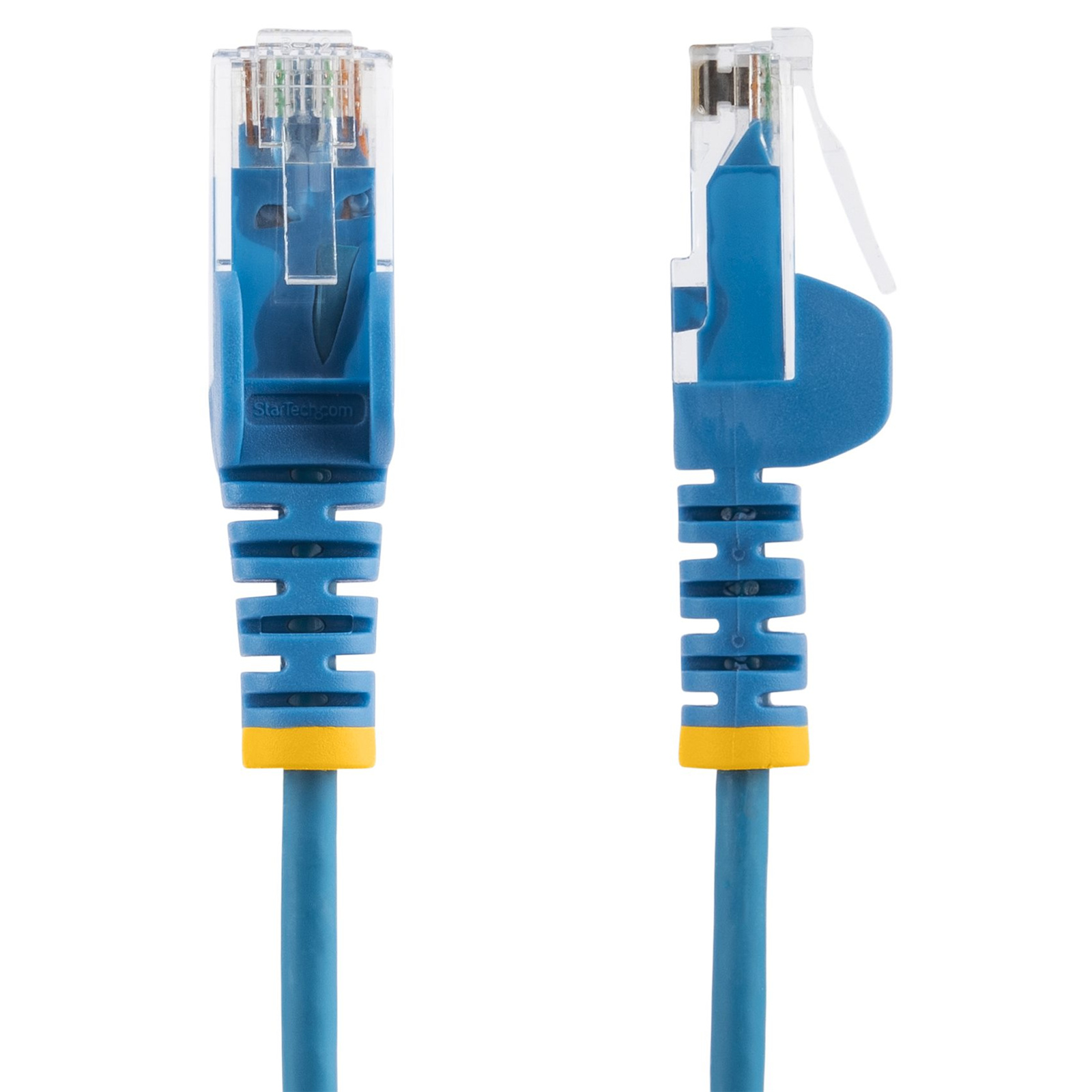 The Slim Cat6 Patch Cord is 36% thinner than standard Cat6 Ethernet cables, enabling greater airflow and heat dissipation in confined spaces. The Slim Cat6 Ethernet cable is also more flexible, for easier cable routing in crowded network racks and patch panels. This cable features snagless connectors that protect the RJ45 clips during installation, reducing snags or breakage when routing through narrow gaps or in between devices.