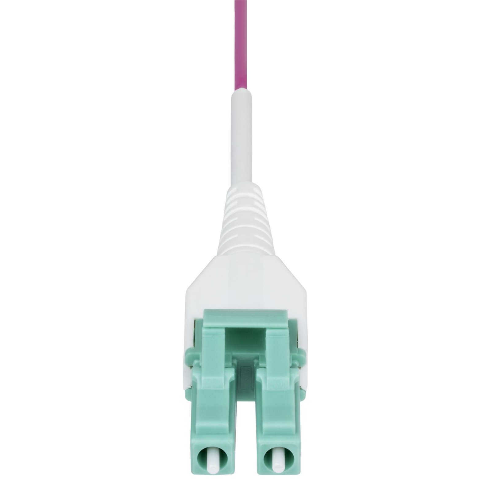 This OM4 LC to LC Multimode Duplex Fiber Optic Patch cable delivers reliable connectivity across 40 and 100 Gigabit networks. The TIA-standard Erika Violet jacket clearly distinguishes OM4 from Aqua OM3/OM4 cabling, eliminating guesswork in critical network setups. The compact uniboot connector design enables easy insertion and removal in high-density installations.