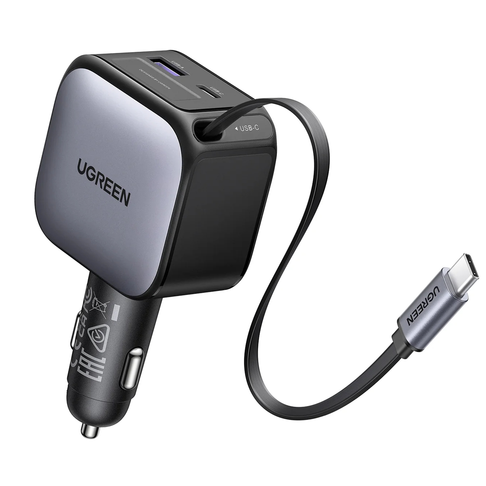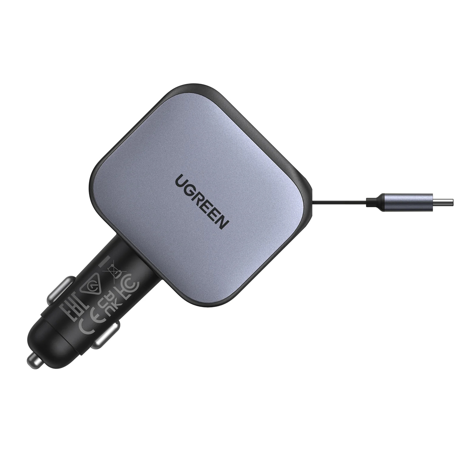 UGREEN 90W Fast Car Charger with Retractable Cable