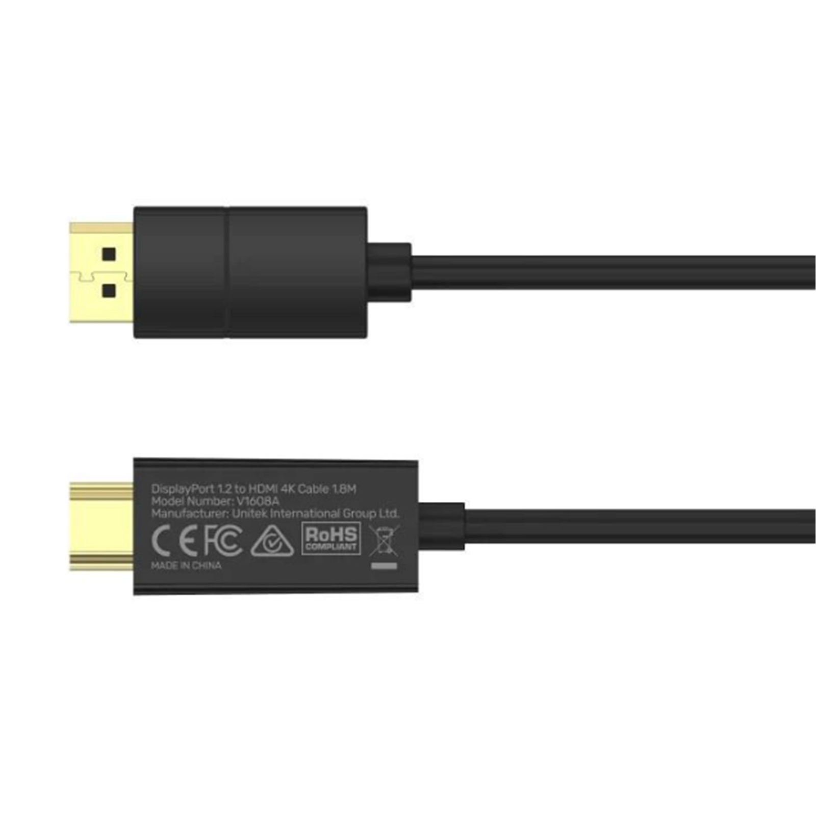 Unitek V1608A DisplayPort to HDMI Cable - 1.8m - Black Up to 4K 60Hz - Up to 18Gbps - HDCP2.2 - Gold Plated Connectors
