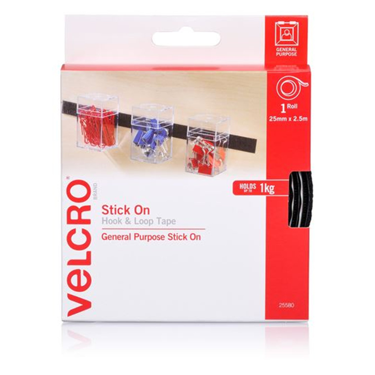 VELCRO® Brand Stick On Tape is ideal for hanging and attaching items at home, work and in the classroom. Display posters, signs, prints, artwork and more, quickly and easily without the mess of glue or the hassle of nails and tacks. Can be cut to size to suit the requirements of your task. Suitable for use on most smooth indoor surfaces including wood, metal, glass, cardboard and plastic.