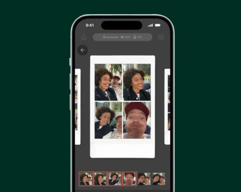 Share the experience of taking photos with others using Remote Live View in instax AiR Studio™ mode.
