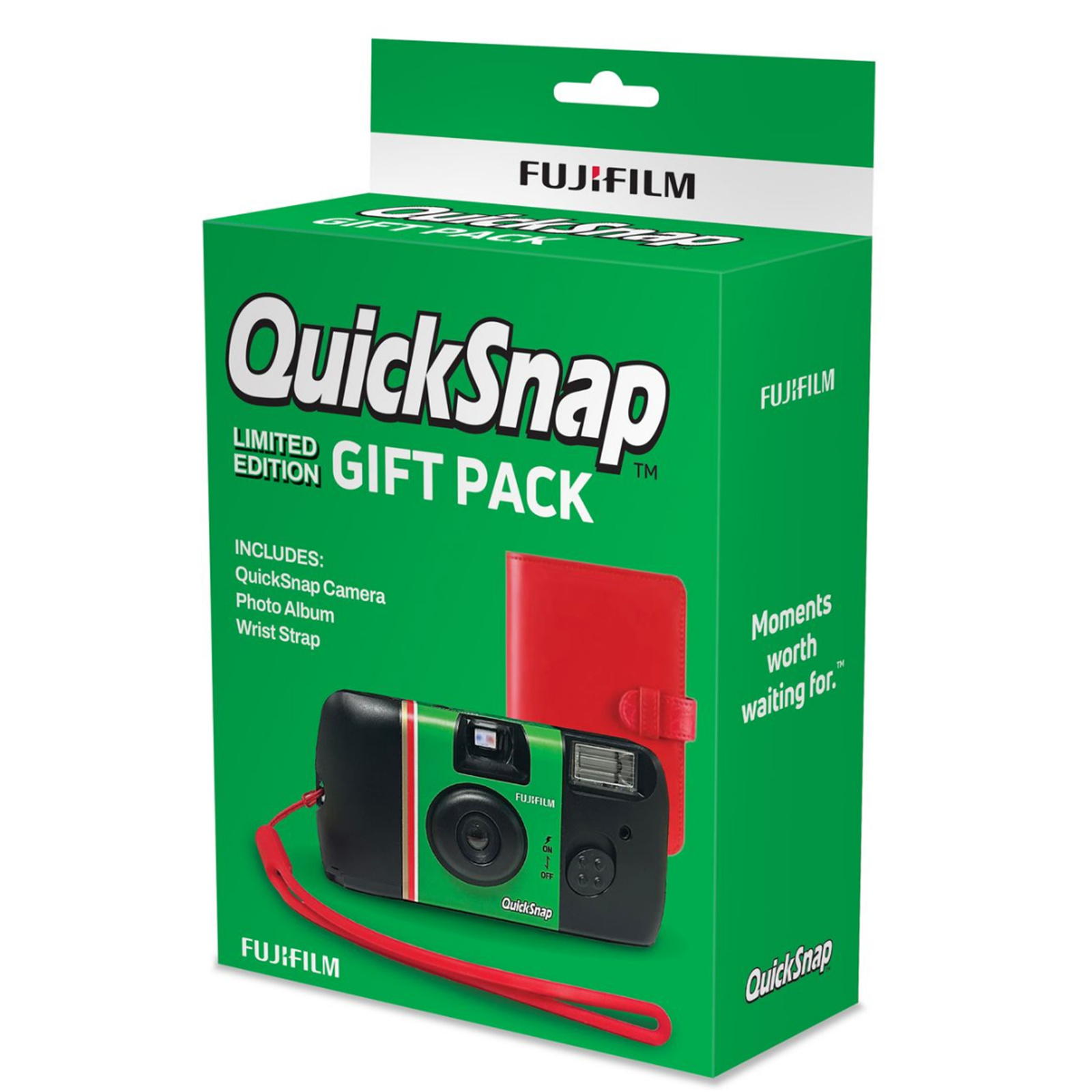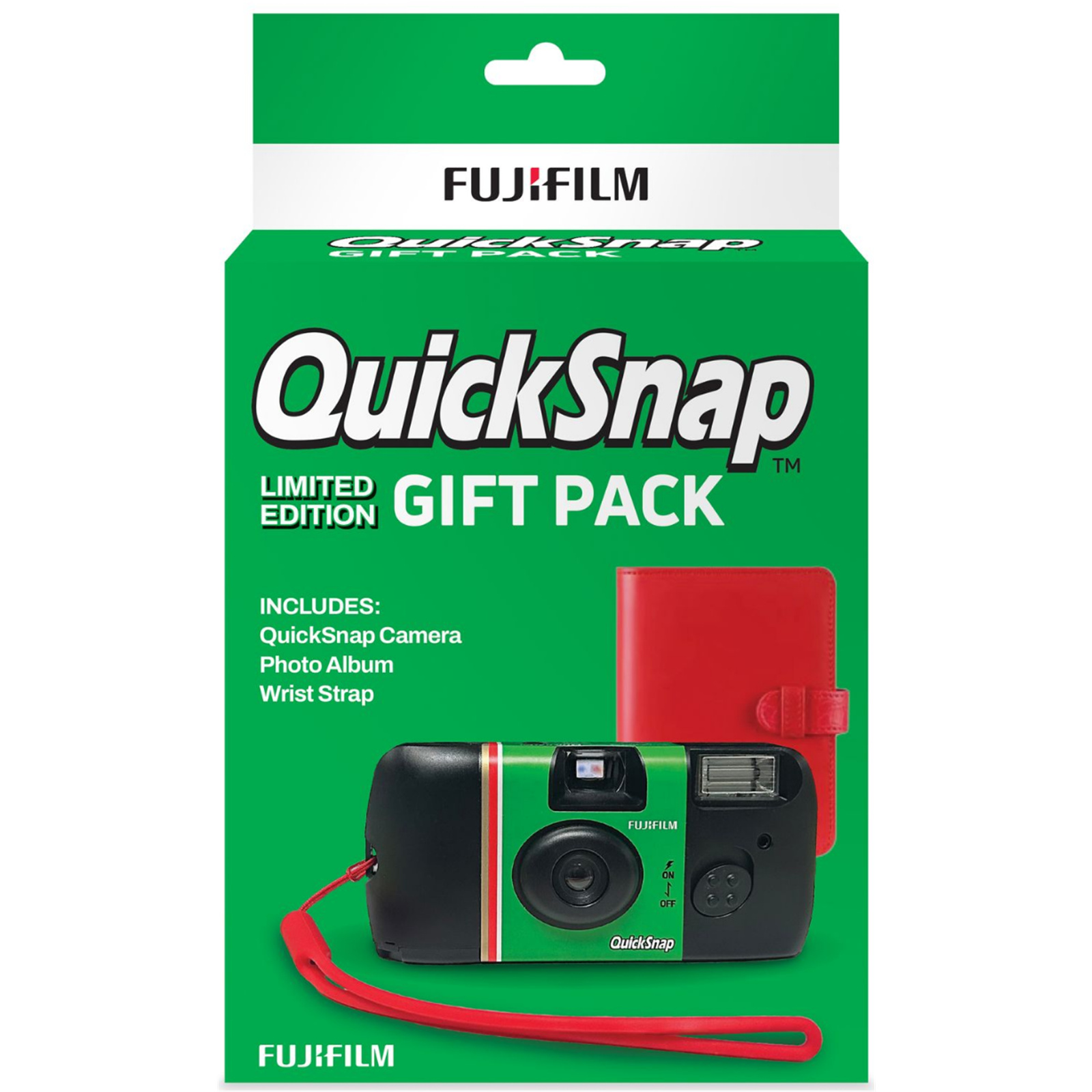 Fujifilm QuickSnap Disposable one time use Camera with Flash Christmas Gift Pack 2025 (27 Exposures) Single use, Includes: QuickSnap Camera, Photo Album, Wrist Strap
