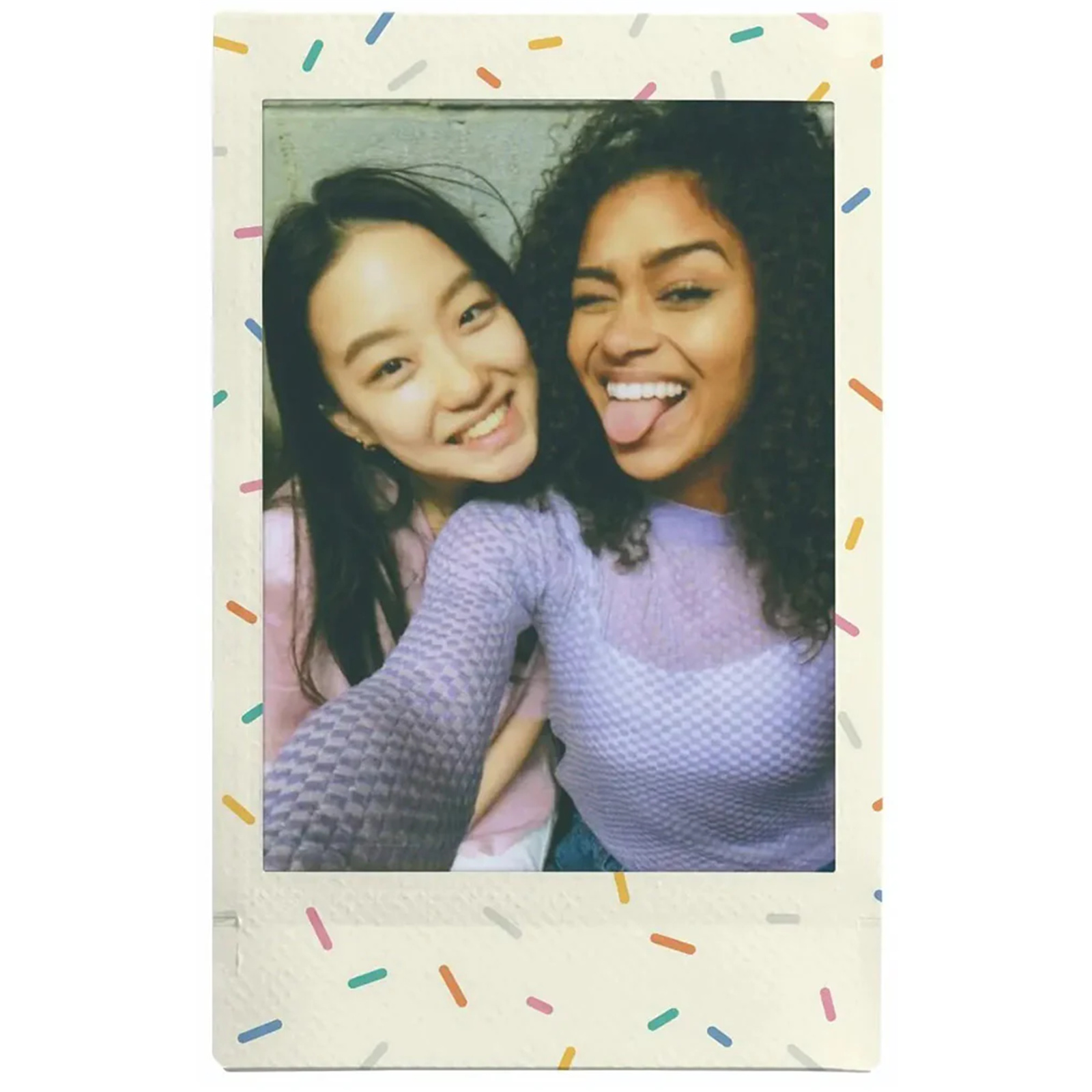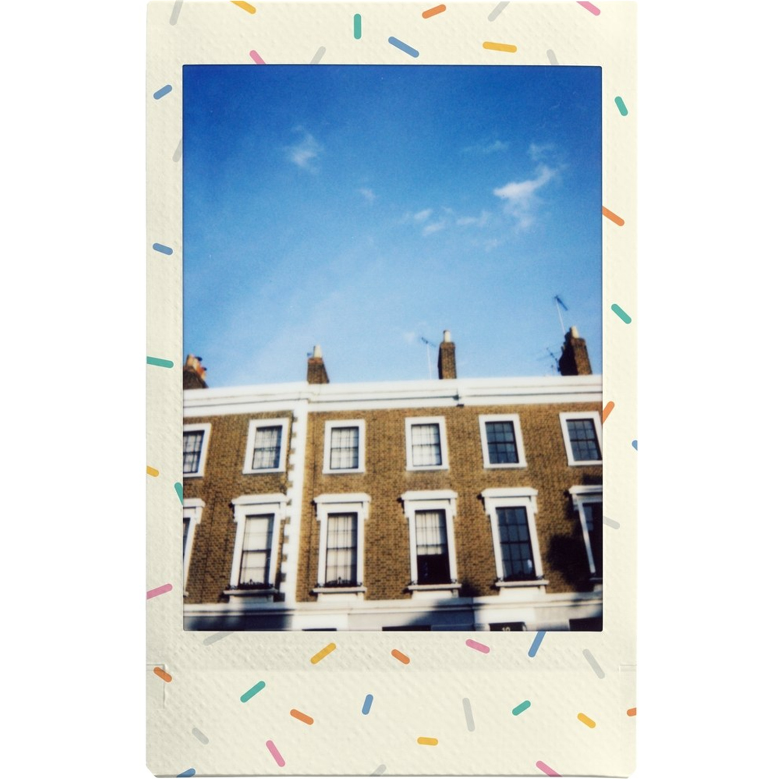 The Instax Mini Sprinkles instant film pack features a fun, colorful sprinkle border design on a 2" x 3" size Instax Mini photo that will add a super cute touch to your images. This film pack is also perfect for parties! Instax Mini Sprinkles instant film is available in a 10 exposure pack. It can be used with the Instax Pal digital camera, all Instax Mini instant and hybrid cameras and all Instax Mini Link Smartphone printers.