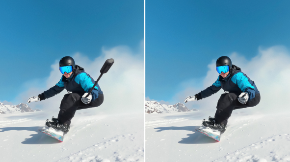 Nothing but the moment. The selfie stick completely disappears from your 360 videos for epic third-person and fake-drone shots.